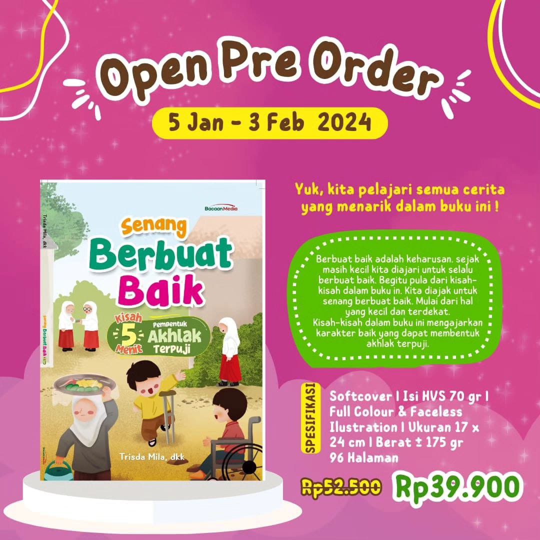 Buku "Kisah 5 Menit Pembentuk Karakter Terpuji : Senang Berbuat Baik" adalah kumpulan cerita inspiratif yang sarat dengan nilai-nilai kebaikan dan akhlak mulia Islam. Buku ini bertujuan untuk menanamkan karakter positif pada anak-anak melalui kisah-kisah yang menarik dan mudah dipahami.