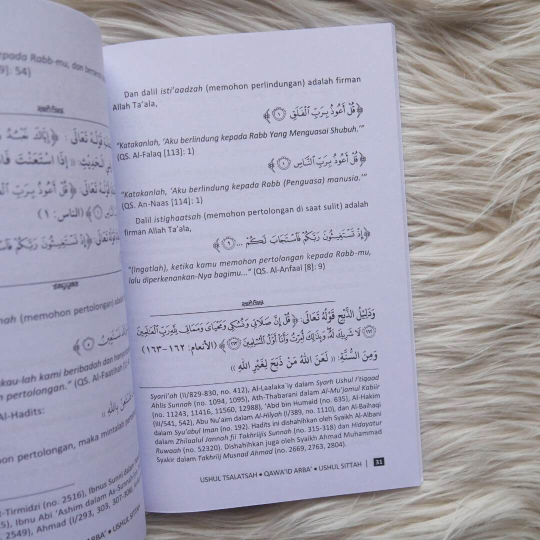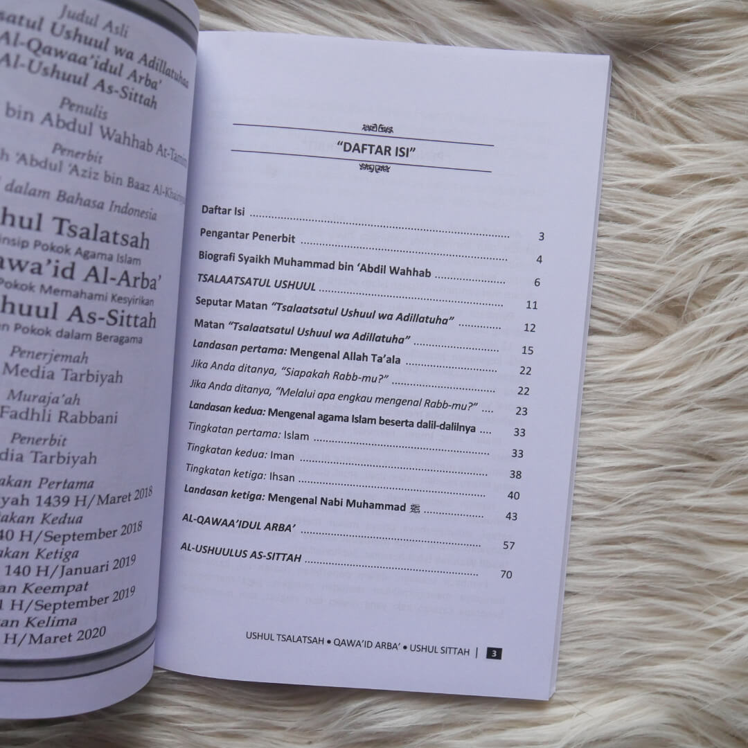 Buku ini berjudul “Buku Ushul Tsalatsah Al-Qawa’id Al-Arba’ Ushul Sittah”, Buku ini memaparkan tiga prinsip pokok agama Islam, empat kaidah memahami kesyirikan, enam landasan pokok dalam beragama.