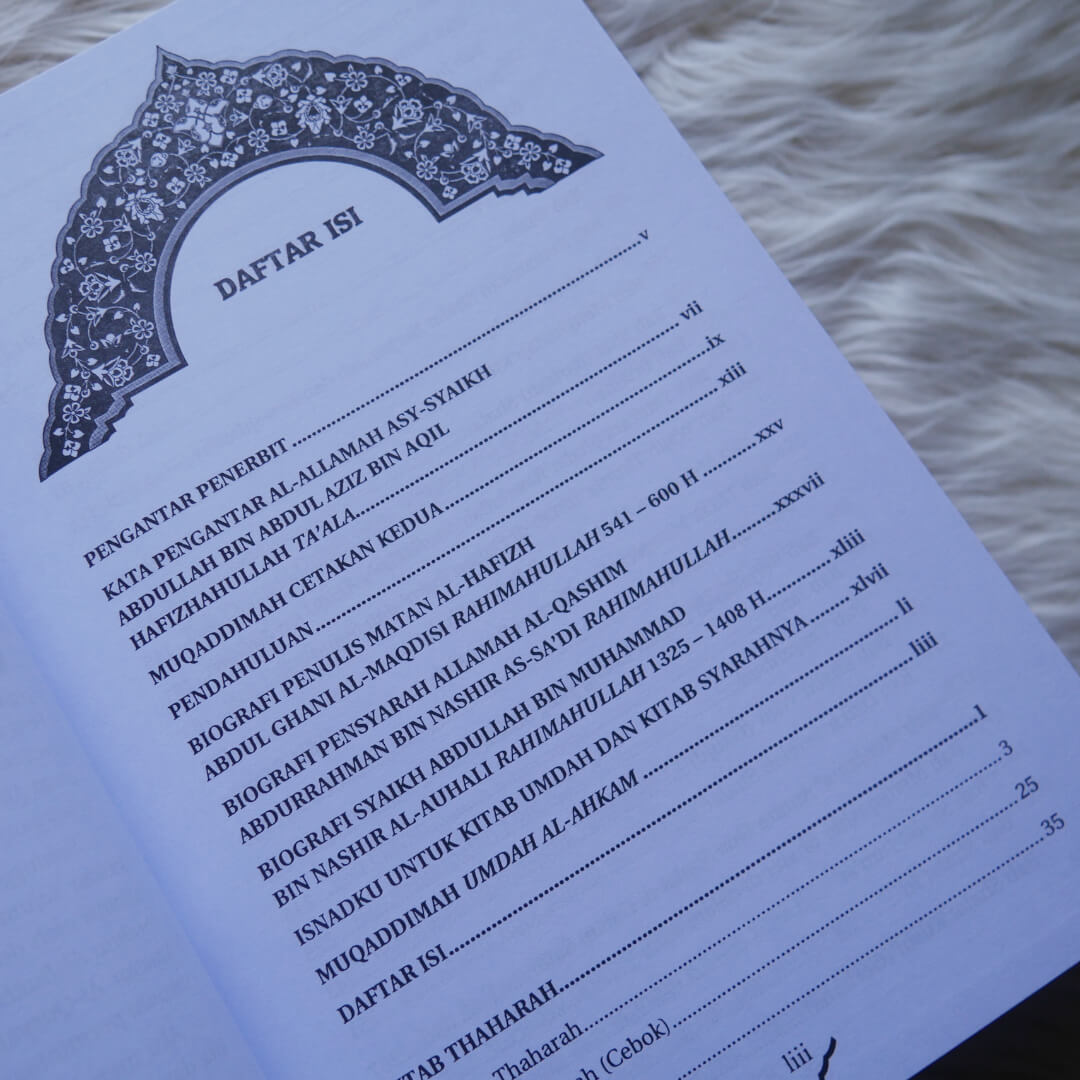 Pembahasan hadits-hadits dalam buku Syarah Umdatul Ahkam ini disajikan secara tematik fikih yang meliputi bab Thaharah, Shalat, Jenazah, Zakat, Puasa, Haji, Jual Beli, Nikah, Thalak, Qishas, Hudud dan masih banyak pembahasan menarik yang lainnya.