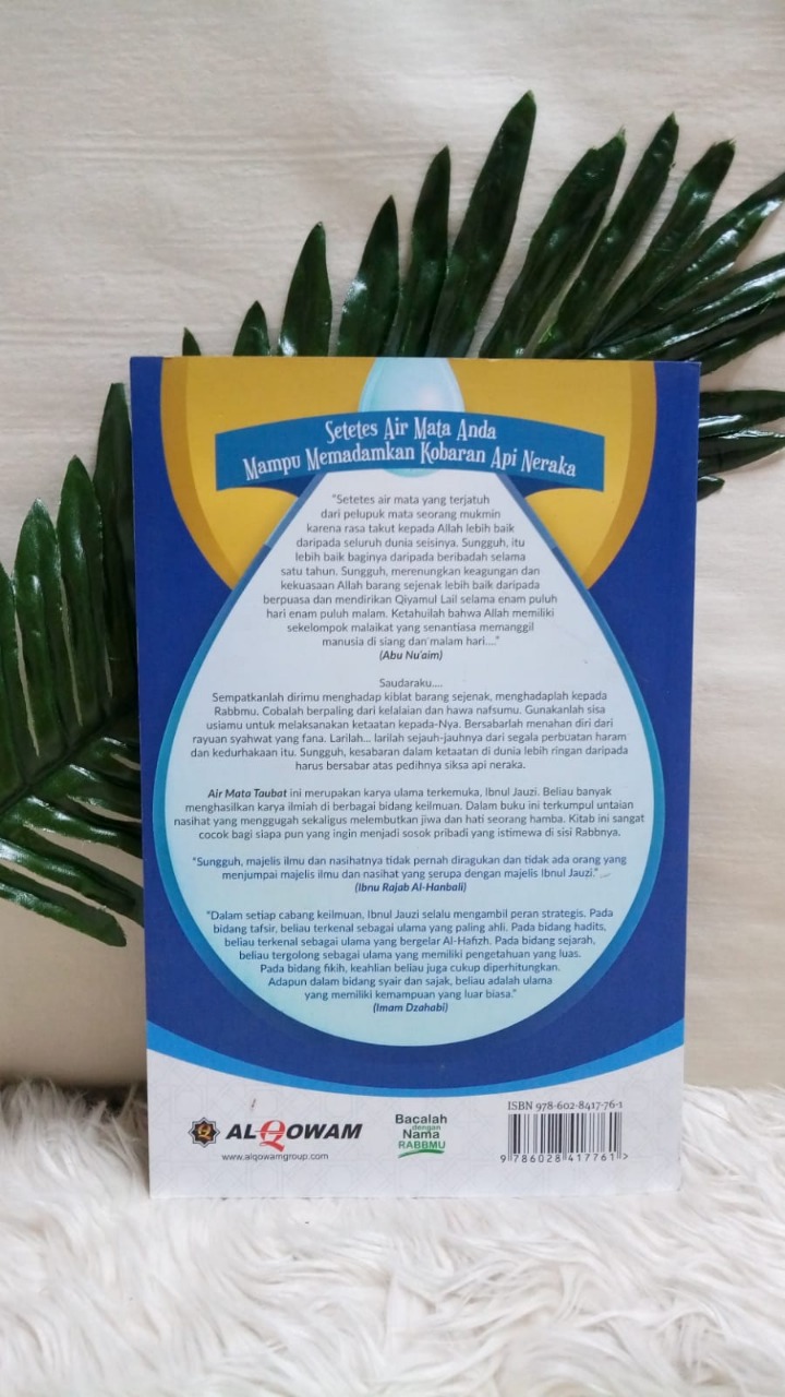 Air Mata Taubat ini merupakan karya ulama terkemuka, Ibnul Jauzi. Beliau banyak menghasilkan karya ilmiah di berbagai bidang keilmuan. Dalam buku ini terkumpul untaian nasihat yang menggugah sekaligus melembutkan jiwa dan hati seorang hamba. Kitab ini sangat cocok bagi siapa pun yang ingin menjadi sosok pribadi yang istimewa di sisi Rabbnya.