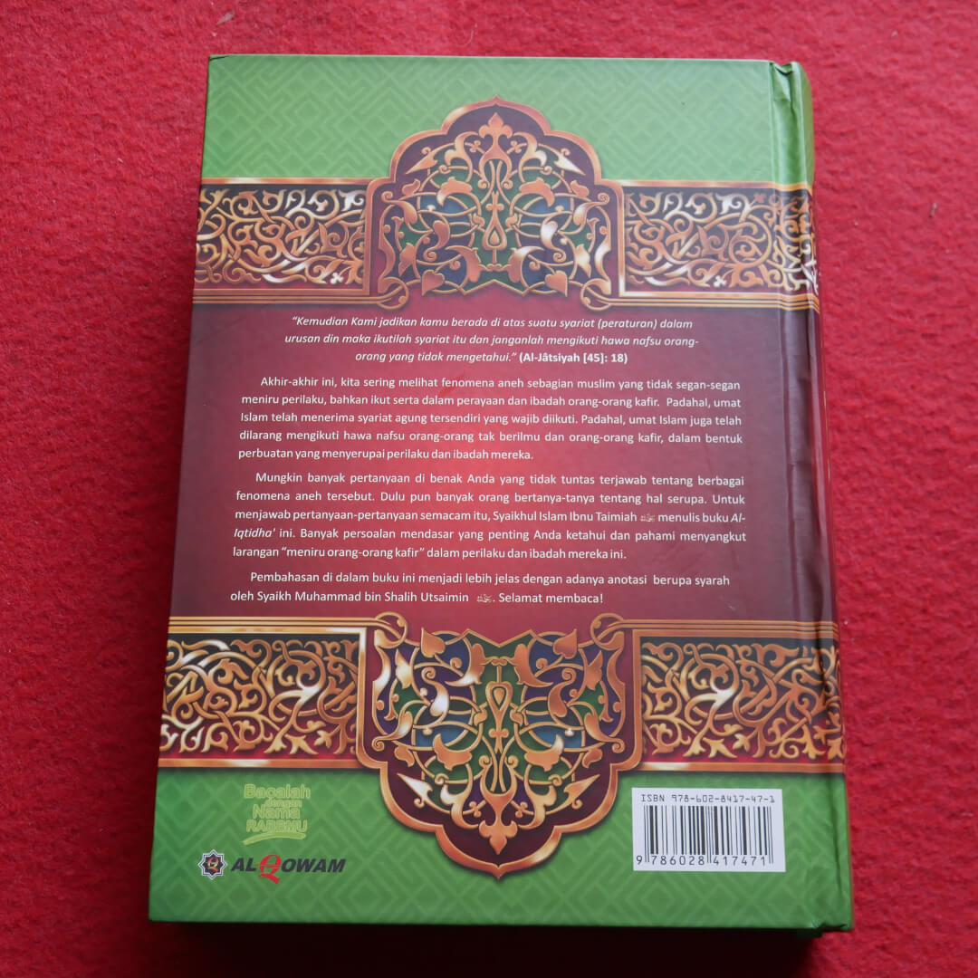 Buku Al-Iqtidha Meniti Shirathal Mustaqim Menyelisihi Ashabul Jahim ini menjelaskan secara panjang lebar tentang persoalan mendasar yang penting untuk dipahami menyangkut larangan “meniru orang-orang kafir” dalam perilaku dan ibadah mereka. Kita pun sering melihat fenomena aneh sebagian muslim yang tidak segan-segan meniru perilaku, bahkan ikut serta dalam perayaan dan ibadah orang-orang kafir. Padahal, umat Islam telah memiliki syariat teragung dan terbaik. yaitu syariat Islam.