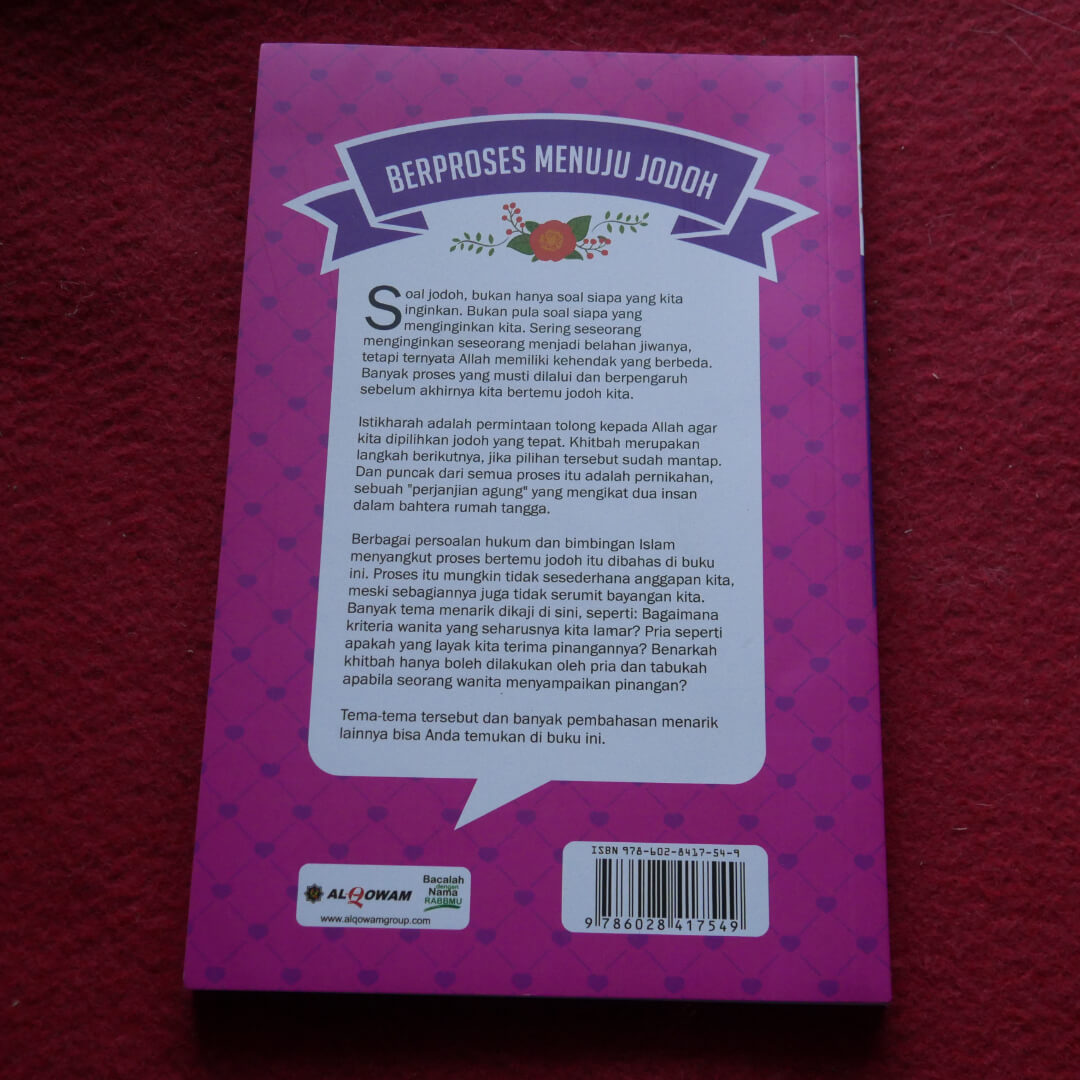 Masalah jodoh bukan masalah sederhana. Seringkali seorang menginginkan orang lain menjadi belahan jiwanya, tetapi ternyata Allah memiliki kehendak yang berbeda. Banyak proses yang harus dilalui dan berpengaruh sebelum akhirnya kita bertemu dengan jodoh kita seperti yang dijelaskan dalam buku Fikih Menjemput Jodoh. Allah ta’ala sudah menakdirkan jodoh masing-masing dan tidak akan tertukar. Maka hendaknya kita mencarinya dengan jalan yang halal yang telah ditetapkan Allah ta’ala.
