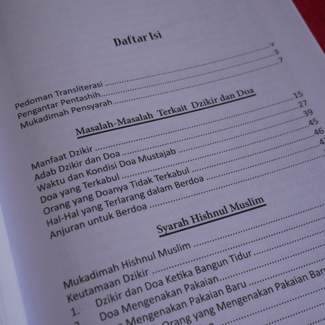 Buku Syarah Hishnul Muslim ini berisi tentang dzikir dan doa sehari-hari yang bersumber dari al Qur’an dan as Sunnah. Baik itu doa dan dzikir yang berhubungan dengan ibadah, seperti shalat, maupun doa dan dzikir yang berhubungan dengan aktivitas sehari-hari. Misalnya doa bangun tidur, dzikir pagi dan petang, akan berpergian dan masih banyak lagi.