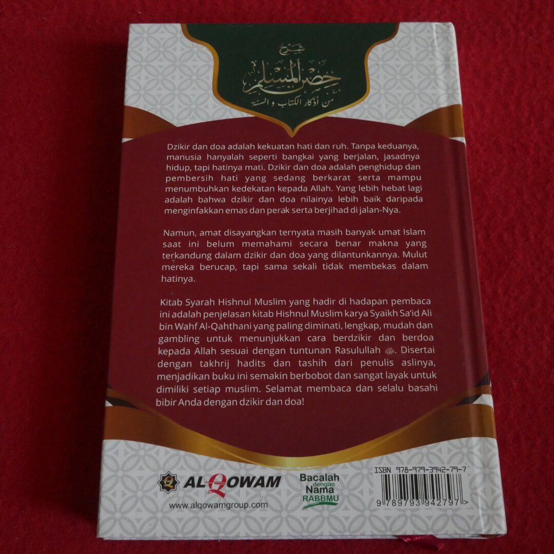 "Buku Syarah Hisnul Muslim Penjelasan Dzikir Dan Doa yang bagus ini adalah penjelasan kitab Hisnul muslim karya Syaikh Sa’id bin ‘Ali bin Wahf Al-Qohthoni, kitab yang saat ini paling banyak dicari karena merupakan kumpulan doa dzikir yang lengkap, mudah dan jelas untuk menunjukan cara berdzikir dan berdoa kepada Allloh sesuai dengan tuntunan Rasulullah. Buku ini juga disertai dengan takhrij hadits dan tashih dari penulis aslinya, sehingga menjadikan buku ini semakin berbobot dan sangat layak untuk dimiliki setiap muslim.