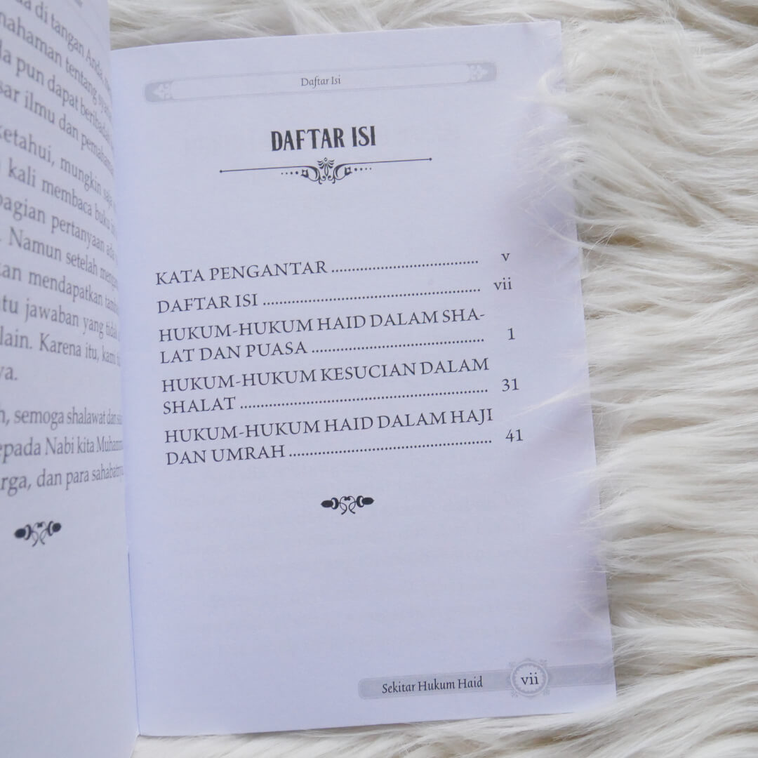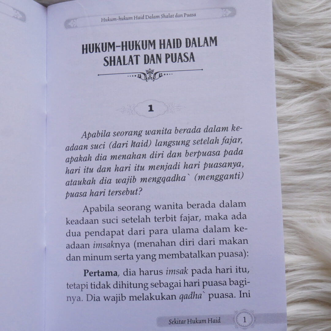 Buku ini perlu dikoleksi oleh setiap wanita muslimah, karena berisi petunjuk hukum-hukum yang berkaitan dengan haid yang patut diketahui. Di antara isi buku ini adalah: Hukum shalat dan puasa wanita yang mengalami keguguran. Jika suci haid pada waktu Ashar, apakah harus shalat Zhuhur pula? Keluarnya darah dari wanita hamil, apakah berpengaruh terhadap shalat dan puasa? Wanita yang suci dari haid, tetapi tidak mendapati lendir putih. Hukum membaca al-Qur’an bagi wanita haid dan nifas. Wanita yang kedatangan haid setelah masuk waktu shalat, tetapi belum shalat. Keluarnya cairan, apakah berpengaruh terhadap wudhu? Keluarnya kotoran sebelum atau sesudah haid. Dan masalah-masalah lainnya.