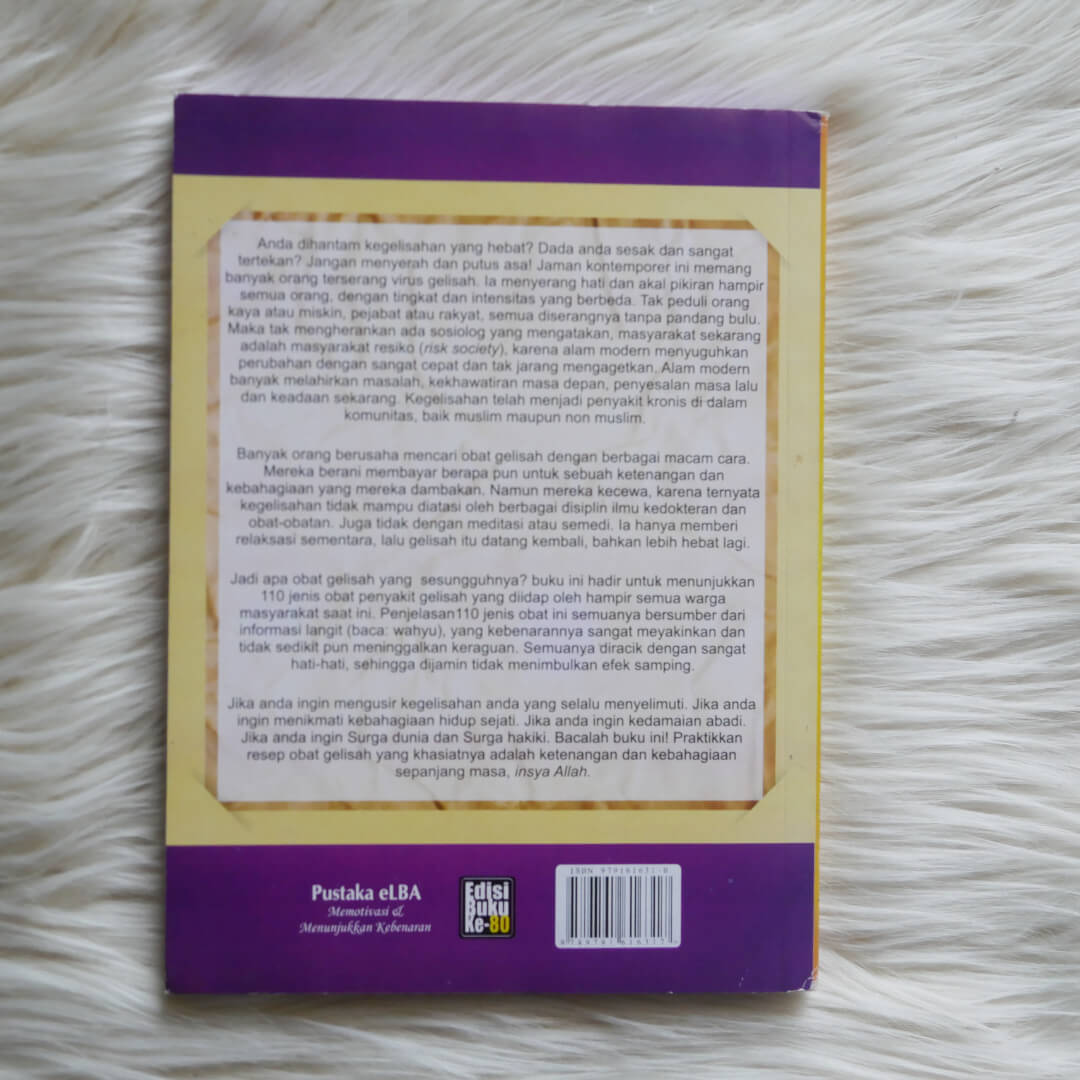 Buku ini hadir dan menyajikan 110 jenis obat penyakit gelisah yang diidap oleh hampir semua warga masyarakat modern saat ini. Penjelasan 110 jenis obat ini semuanya bersumber dari informasi langit (baca: wahyu), yang kebenarannya sangat meyakinkan dan tidak sedikit pun meninggalkan keraguan. Semuanya diracik dengan sangat hati-hati, sehingga dijamin tidak menimbulkan efek samping. Jika anda ingin mengusir kegelisahan anda yang selalu menyelimuti. Jika anda ingin menikmati kebahagiaan hidup sejati. Jika anda ingin kedamaian abadi. Jika anda ingin Surga dunia dan Surga hakiki. Bacalah buku ini! Praktikkan resep obat gelisah yang khasiatnya adalah ketenangan dan kebahagiaan sepanjang masa, insya Allah.