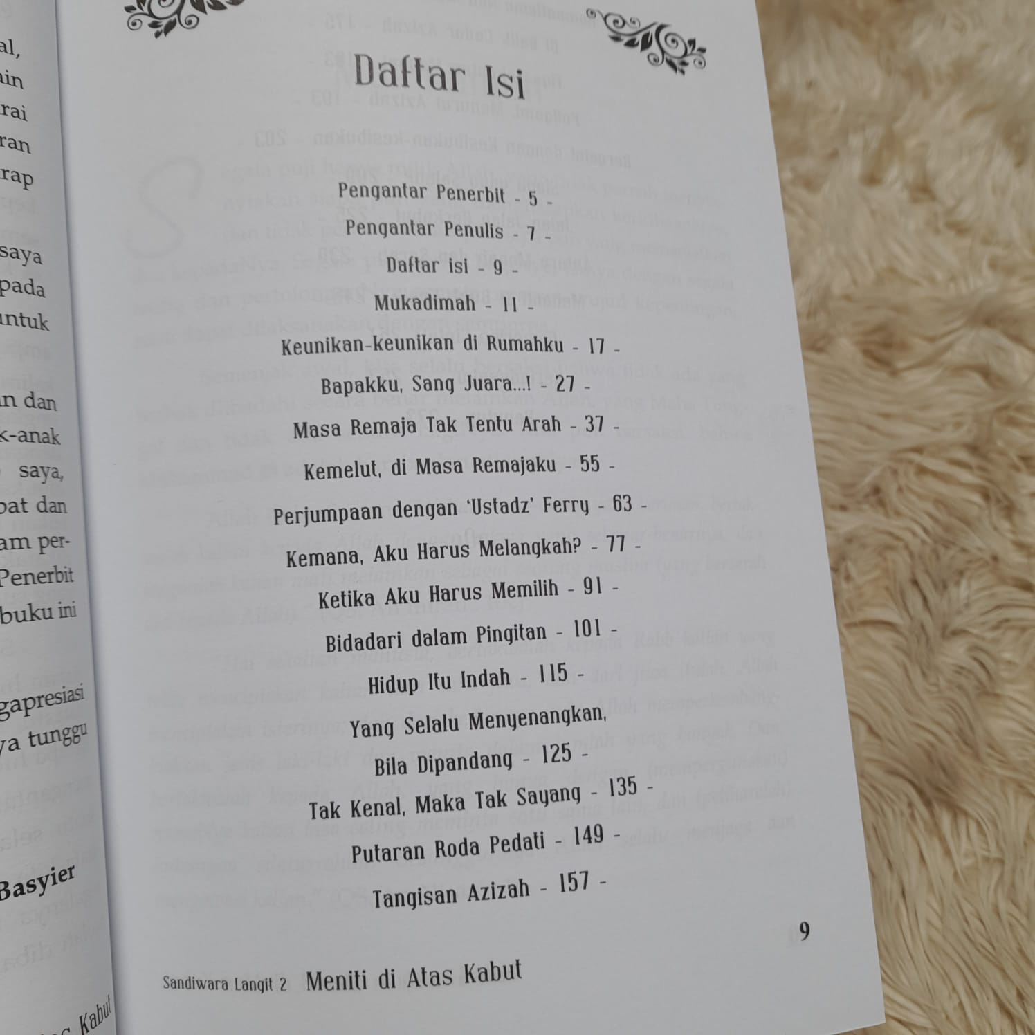 Selami kearifan dan keimanan mereka, kejujuran dan indahnya perjalanan hidup mereka serta temukan diri anda tersenyum, menangis dan tersentuh saat membaca setiap lembar buku Meniti di Atas Kabut ini. Kisah bertabur hikmah ini dipersembahkan buat mereka yang dapat merasakan desiran-desiran hati oleh pasang surut kehidupan yang membawa haru biru.