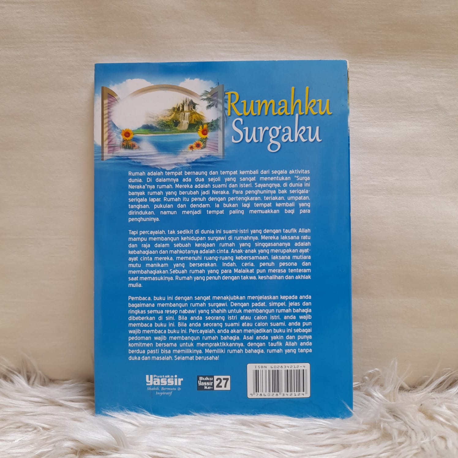 "Buku Rumahku Surgaku adalah terjemahan dari kitab Saadatul hayati Az-Zaujiyyati min Al-Qurani wa As-Sunnah An-Nabawiyyah, yang menjelaskan langkah-langkah membangun rumah tangga yang tenang dan bahagia layaknya Surga. Dijelaskan secara padat dan menarik, sehingga layak dibaca oleh para Suami dan Istri yang menginginkan rumah tangga surgawi.