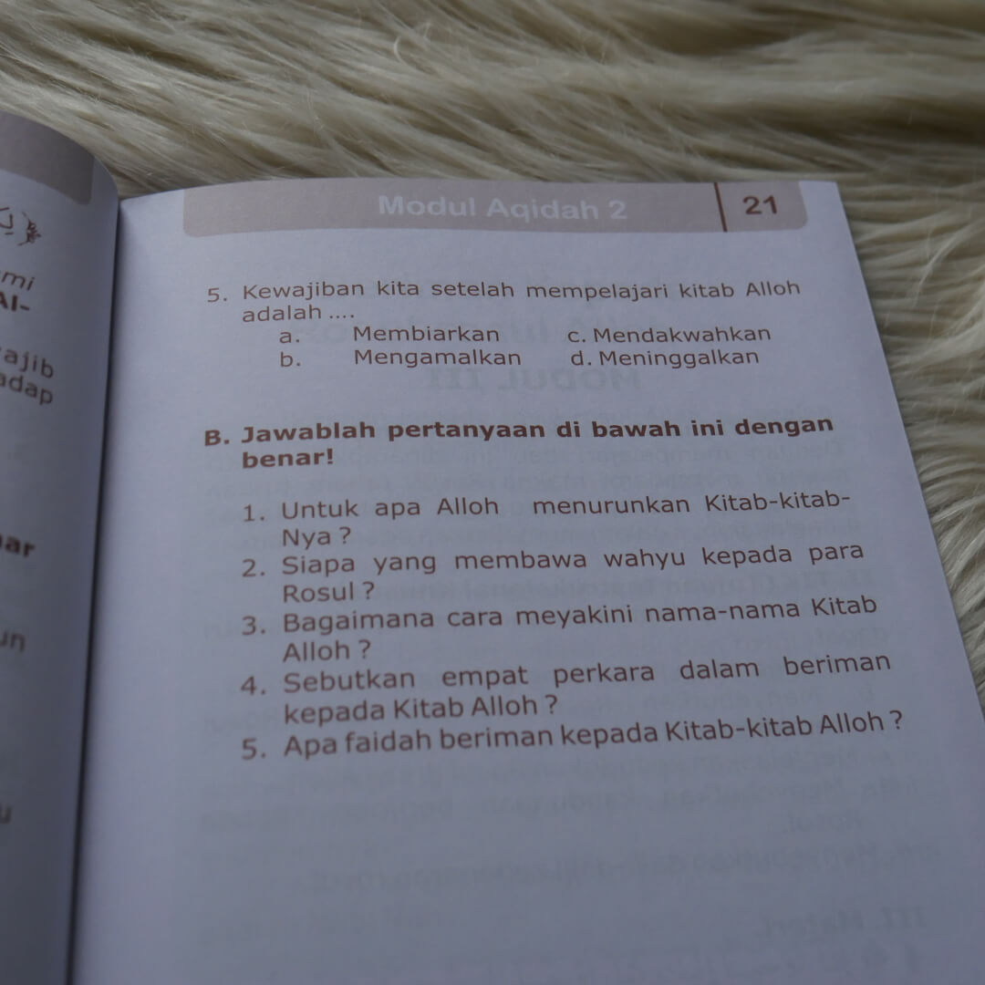 Buku Pegangan Pengajaran Anak-Anak TPA Modul Aqidah ini sangat cocok dipakai sebagai pegangan pengajaran anak-anak TPA atau pelajaran agama TK/SD. Materinya shahih berdasarkan AlQur’an dan Sunnah Rasulullah Shalallahu ‘alaihi wa Sallam, sehingga para pembaca merasa tenang karena materinya terpercaya sesuai syariat islam yang murni. Selain itu, penyajiannya dibuat bagus, dengan dihiasi warna dan gambar yang menarik. Sehingga menambah semangat anak-anak untuk terus belajar agama islam.
