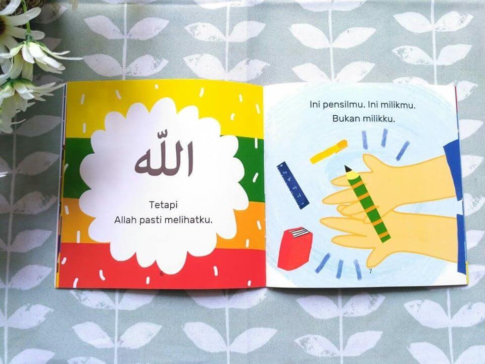 Buku kecil yang sarat hikmah, yg berisi tentang seorang anak menemukan pensil yang terjatuh punya anak lain, dia meegembalikannya, tidak mengambilnya, karena dia tahu Allah selalu melihatnya, Allah tahu apa yang dia lakukan.