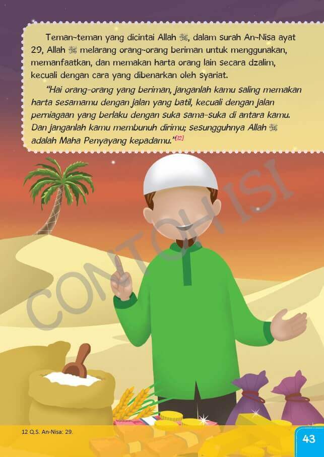 Buku yang dirancang khusus untuk memberikan pemahaman kepada anak-anak tentang konsep-konsep hukum Islam (fiqih) terkait dengan muamalat, yaitu transaksi dan keuangan dalam kehidupan sehari-hari. Memberikan pendidikan agama Islam yang mendalam kepada anak-anak mengenai aspek-aspek praktis dalam muamalat. Mengajarkan prinsip-prinsip yang sesuai dengan ajaran Islam dalam bertransaksi, menangani keuangan, dan aspek muamalat lainnya. Memperkenalkan konsep-konsep dasar hukum Islam yang berlaku dalam muamalat, seperti halal dan haram dalam transaksi, riba, zakat, dan lain-lain.