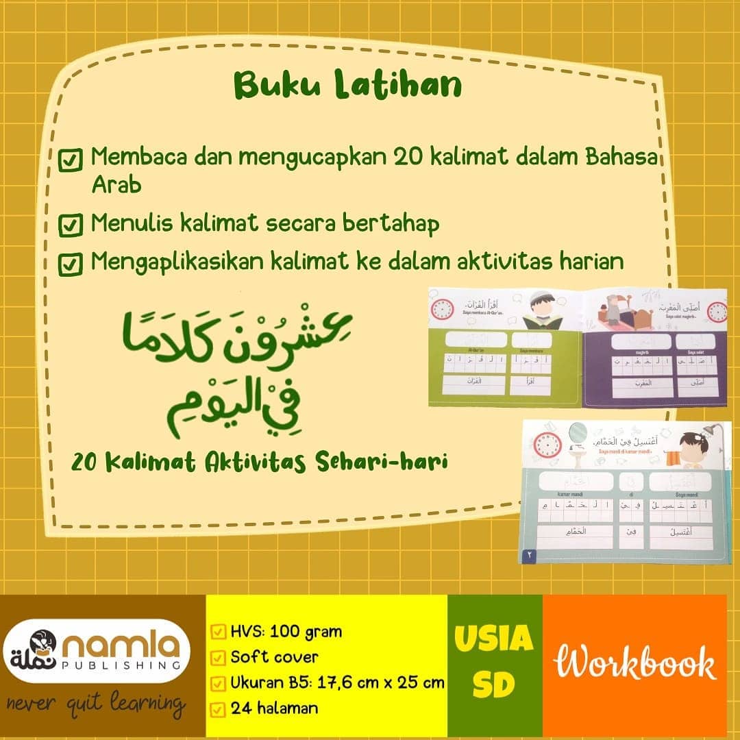 Buku aktivitas terbaru dari Namla Publishing insyaAllah kembali hadir. Kali ini sebagai bentuk latihan belajar Bahasa Arab...
