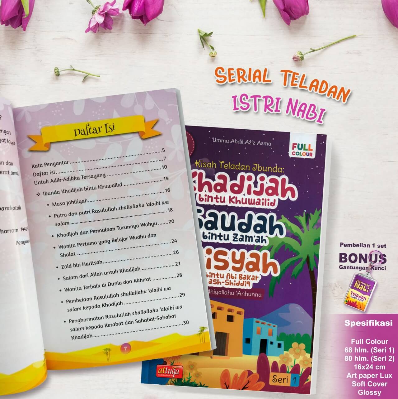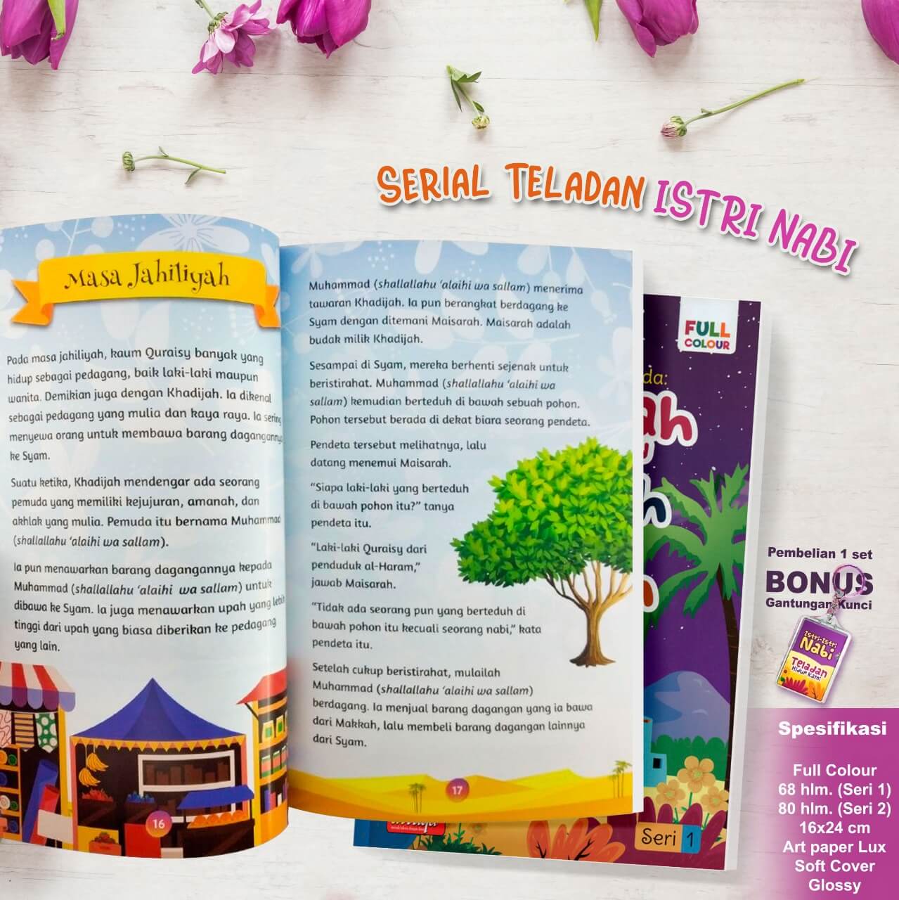 Serial Teladan Istri Nabi Seri 1 dan 2 ini menceritakan kisah inspiratif para istri Nabi Muhammad SAW, yang dikenal sebagai Ummahatul Mukminin (Ibu-ibu Orang Beriman). Dikemas dengan bahasa yang mudah dipahami anak-anak dan dilengkapi ilustrasi menarik, buku ini mengajak para pembacanya untuk meneladani keteladanan, keimanan, dan ketaatan para istri Nabi dalam menjalankan perannya sebagai istri, ibu, dan muslimah.