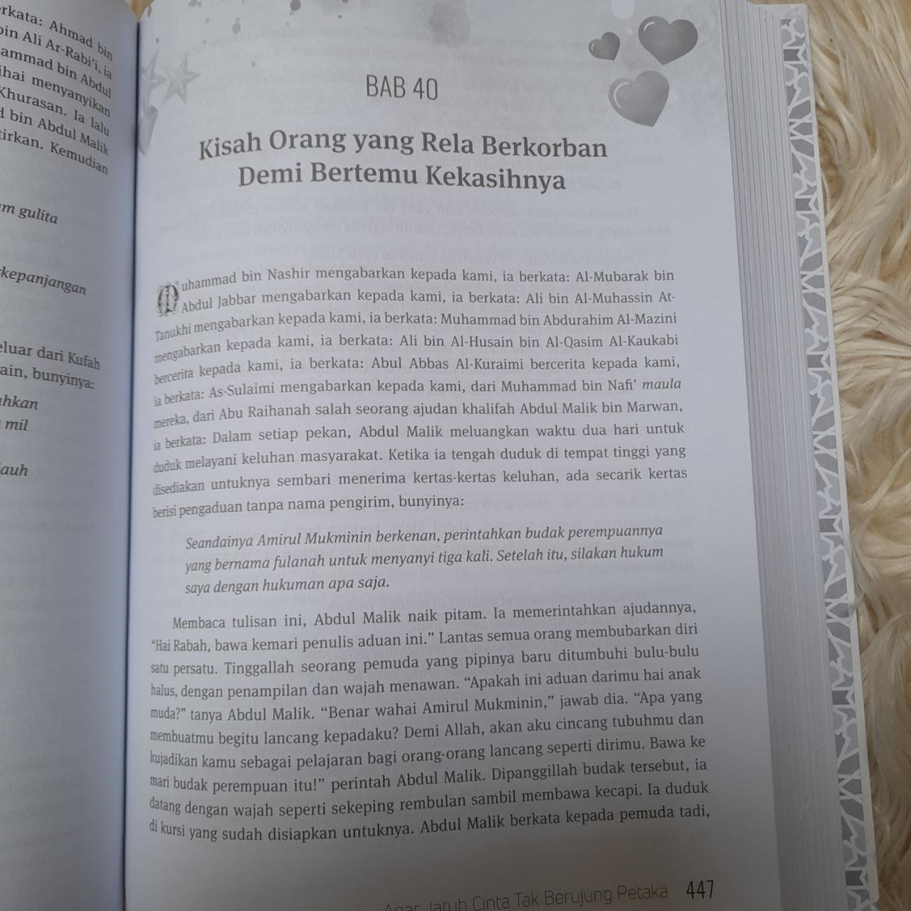 Di buku ini Anda bisa membaca kisah cinta Majnun-Laila beseta syair-syair terkenalnya, pengkhianatan Kutsayir kepada Azzah, cinta Urwah-Afra' yang tak tersampaikan, dan kisah cinta lainnya. Dari sana Anda bisa mengambil pelajaran agar tidak jatuh di lubang yang sama seperti mereka.