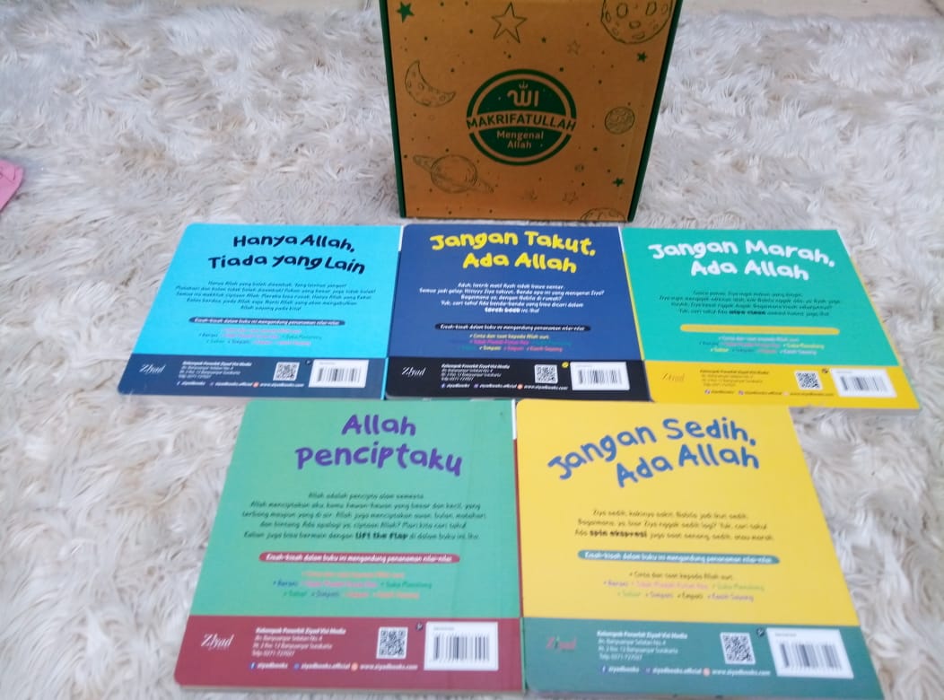 Paket buku yang mengenalkan dan menjelaskan segala hal tentang Allah yang terdiri dari 5 tema, di antaranya Allah Penciptaku, Hanya Allah Tidak Ada yang Lain, Jangan Takut Ada Allah, Jangan Marah Ada Allah, dan Jangan Sedih Ada Allah. Dikemas lewat kisah sehari-hari yang dekat dengan kehidupan si Kecil.