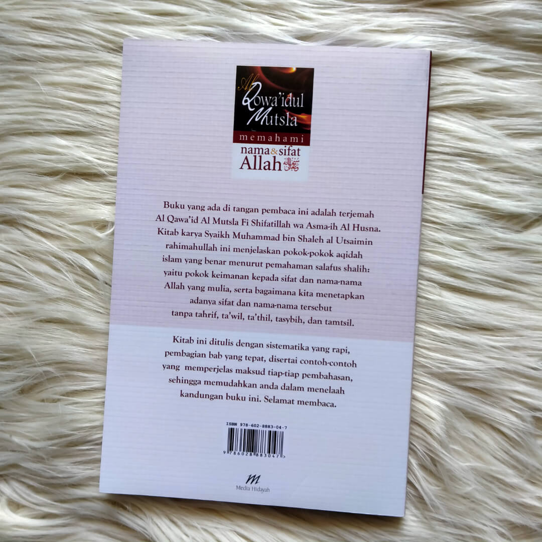 "Buku Al-Qawaidul Mutsla, Memahami Nama dan Sifat Allah merupakan terjemahan dari kitab dengan judul Al Qawa’idul Mutsla fi Shifatillahi wa Asma’ihi al Husna yang ditulis oleh Syaikh Muhammad bin Shalih al-Utsaimin ini memaparkan penjelasan tentang nama dan sifat Allah yang wajib diketahui oleh semua kaum muslimin. Kitab sudah sering dipakai dalam mempelajari nama dan sifat Allah ini patut dimiliki semua kaum muslimin yang bersungguh-sungguh dalam menuntut ilmu.