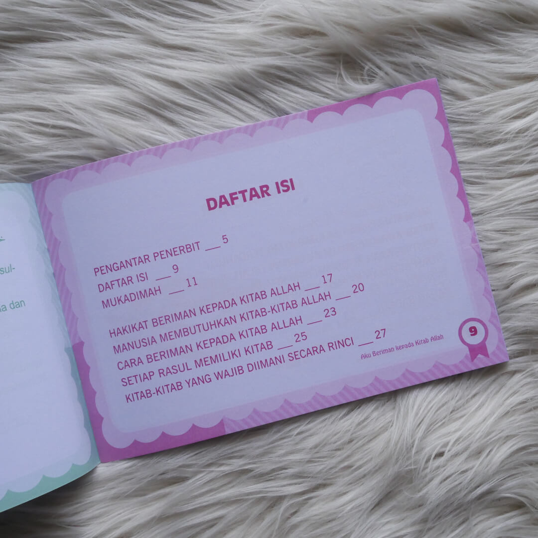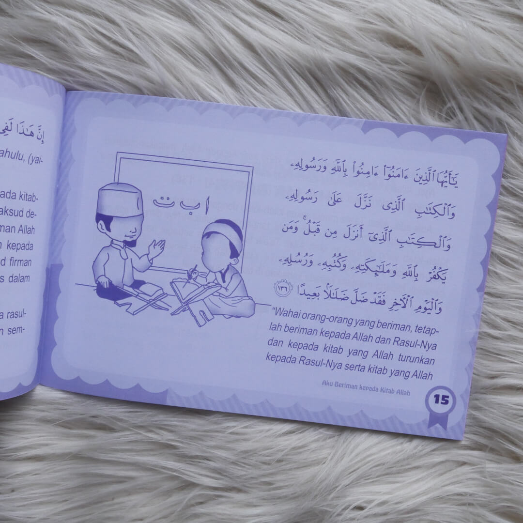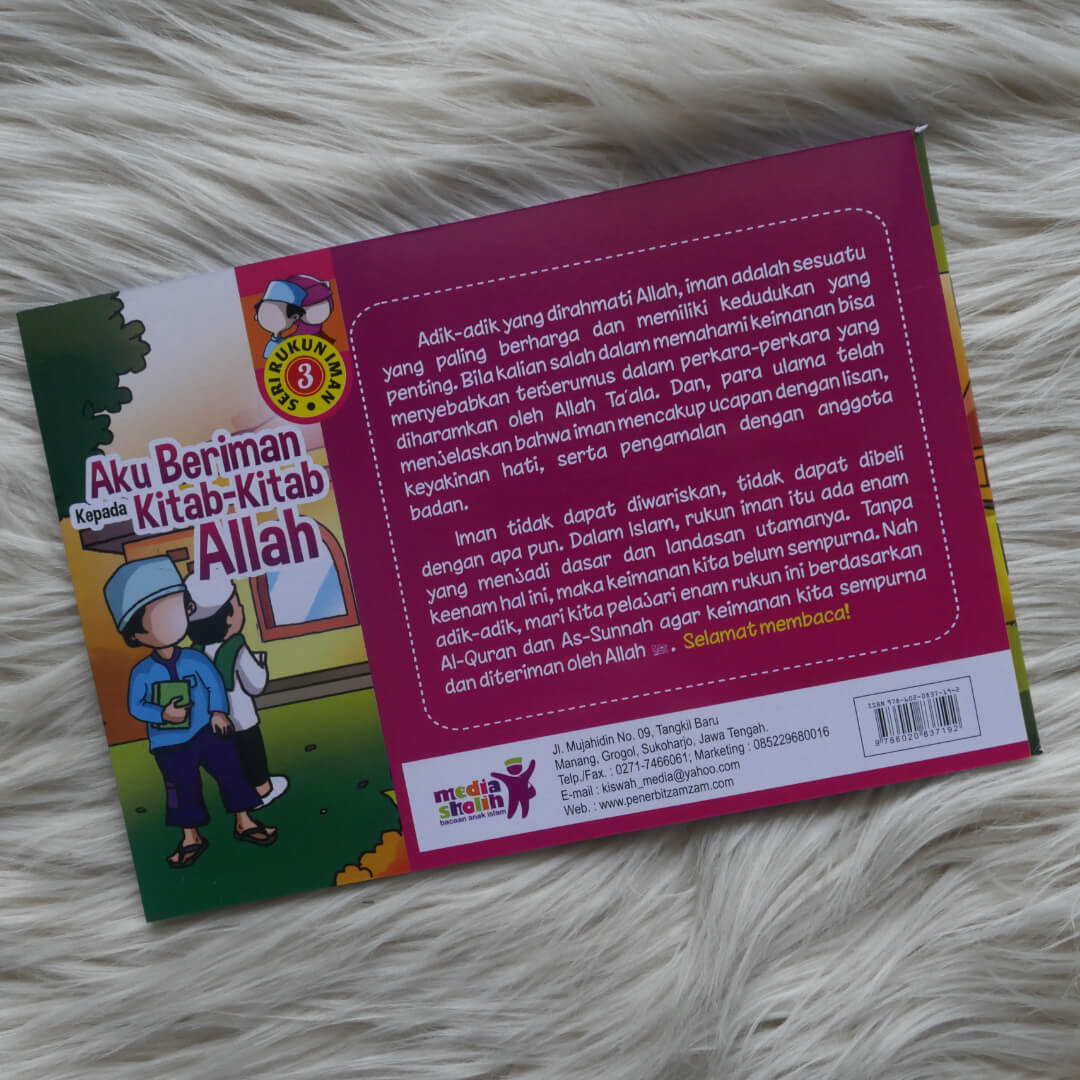Buku ini berjudul Buku Anak Aku Beriman Kepada Kitab-kitab Allah , merupakan salah satu buku dari buku Seri Rukun Iman.