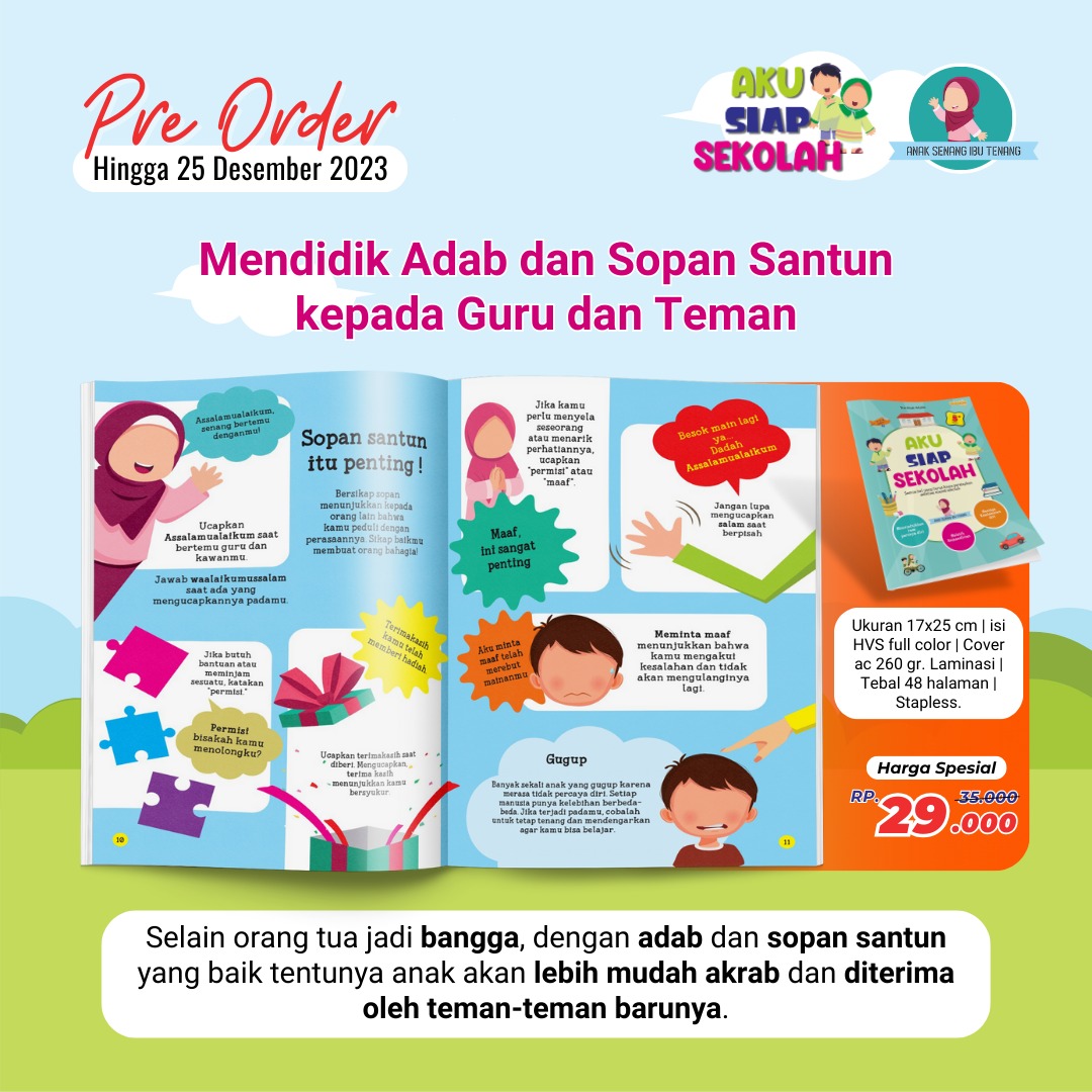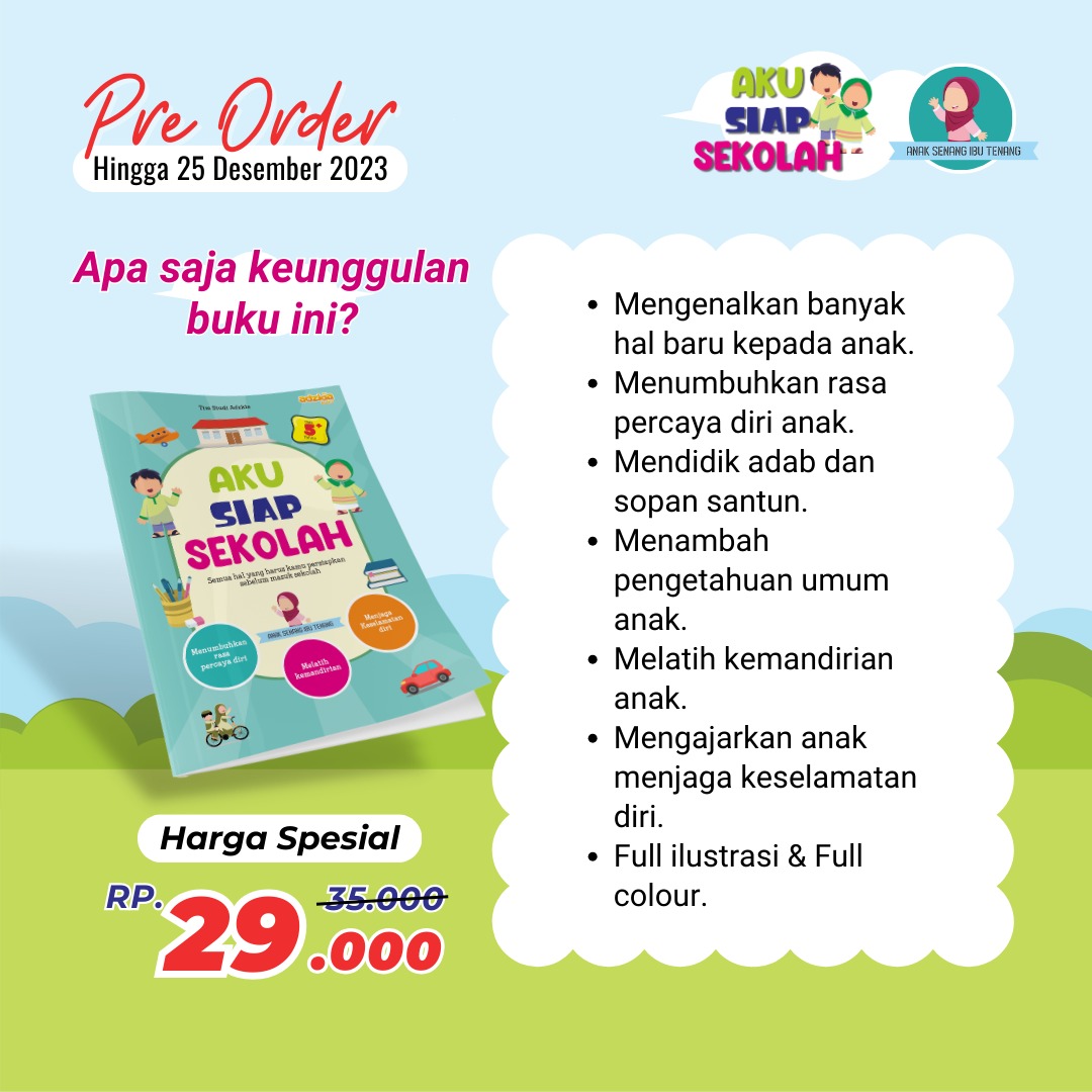 Untuk menghilangkan rasa cemas dan orangtua pun nyaman meninggalkan putra dan putrinya sekolah maka kami hadirkan buku Aku Siap Sekolah