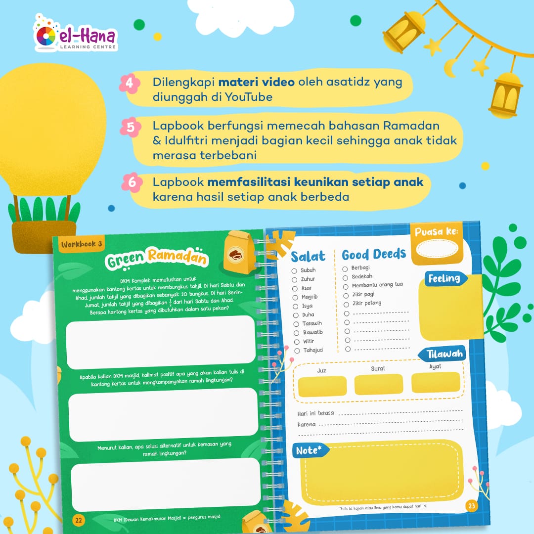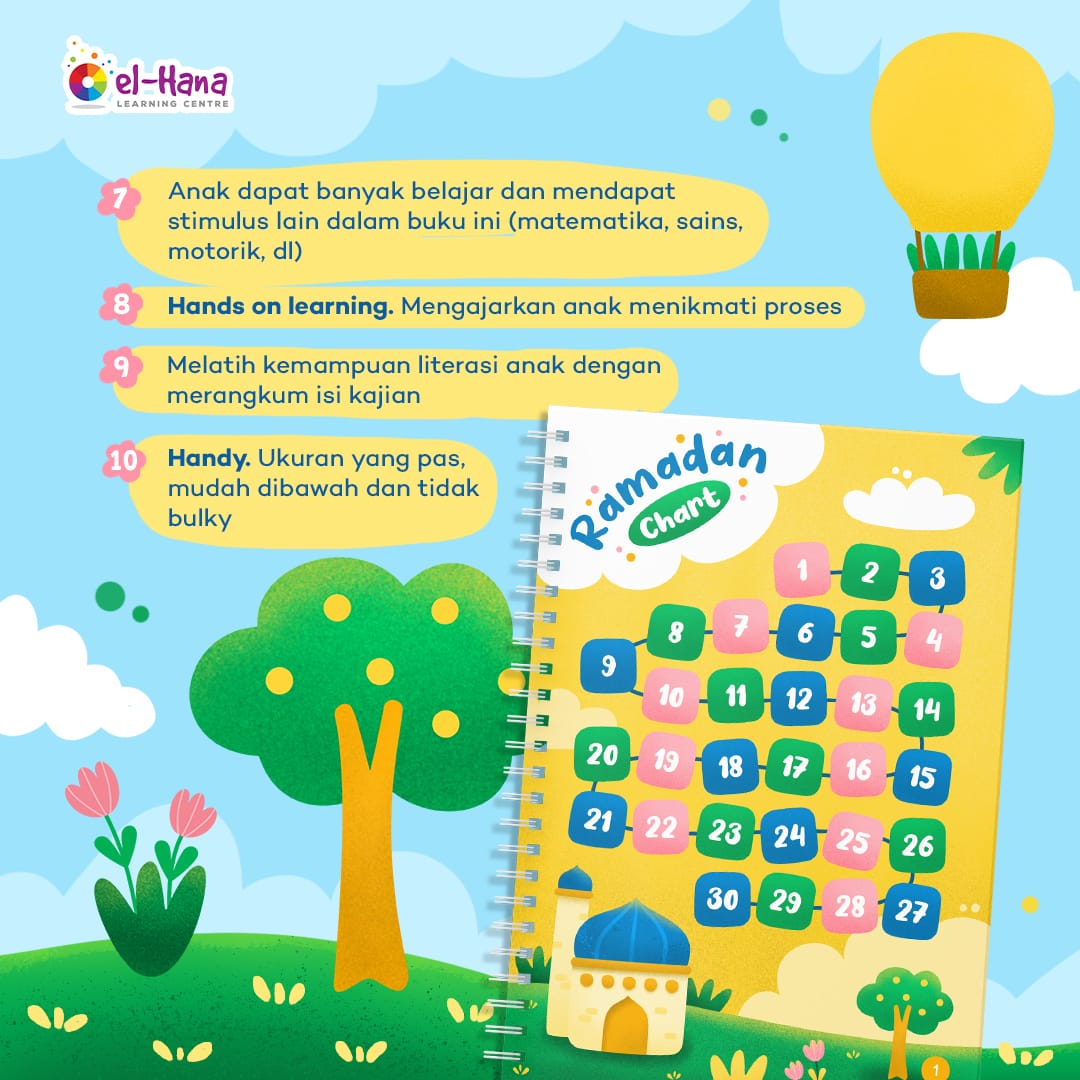 Sahabat Ramadhan El Hana adalah buku aktivitas Ramadhan yang dikemas dalam bentuk jurnal kreatif dan artistik. Buku ini dirancang untuk membantu anak-anak belajar tentang Islam dan Ramadhan dengan cara yang menyenangkan, menarik, edukatif, dan atraktif.