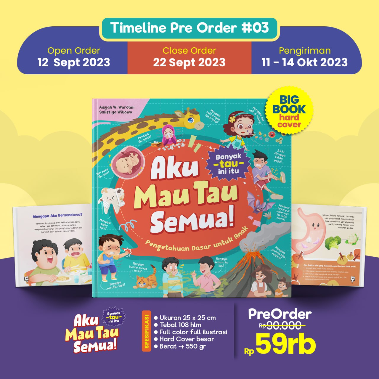Sekarang telah kami hadirkan, buku lanjutan dari Seri Aku Mau Tau Semua! dengan tema baru yang membahas pertanyaan-pertanyaan seputar bentang alam, fenomena di bumi, dan antariksa. Disajikan dengan pertanyaan – pertanyaan yang variatif untuk mengeksplorasi rasa ingin tahu si kecil. Buku yang kami kemas menarik ini berjudul “AKU MAU TAU SEMUA! 3”
