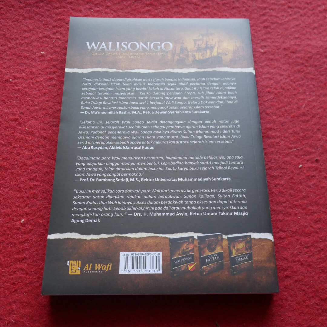 "Buku Walisongo Gelora Dakwah Dan Jihad Di Tanah Jawa ini menyajikan kisah dan biografi yang shahih dari kegiatan dakwah islam dan jihad di tanah jawa yang dilakukan oleh walisongo. Penulis benar-benar berkomitmen untuk menceritakan kisah menurut sumber yang otentik, terpercaya dan dapat dipertanggungjawabkan. Buku yang cocok dijadikan referensi pokok untuk meluruskan sejarah walisongo yang banyak disimpangkan oleh beberapa orang.