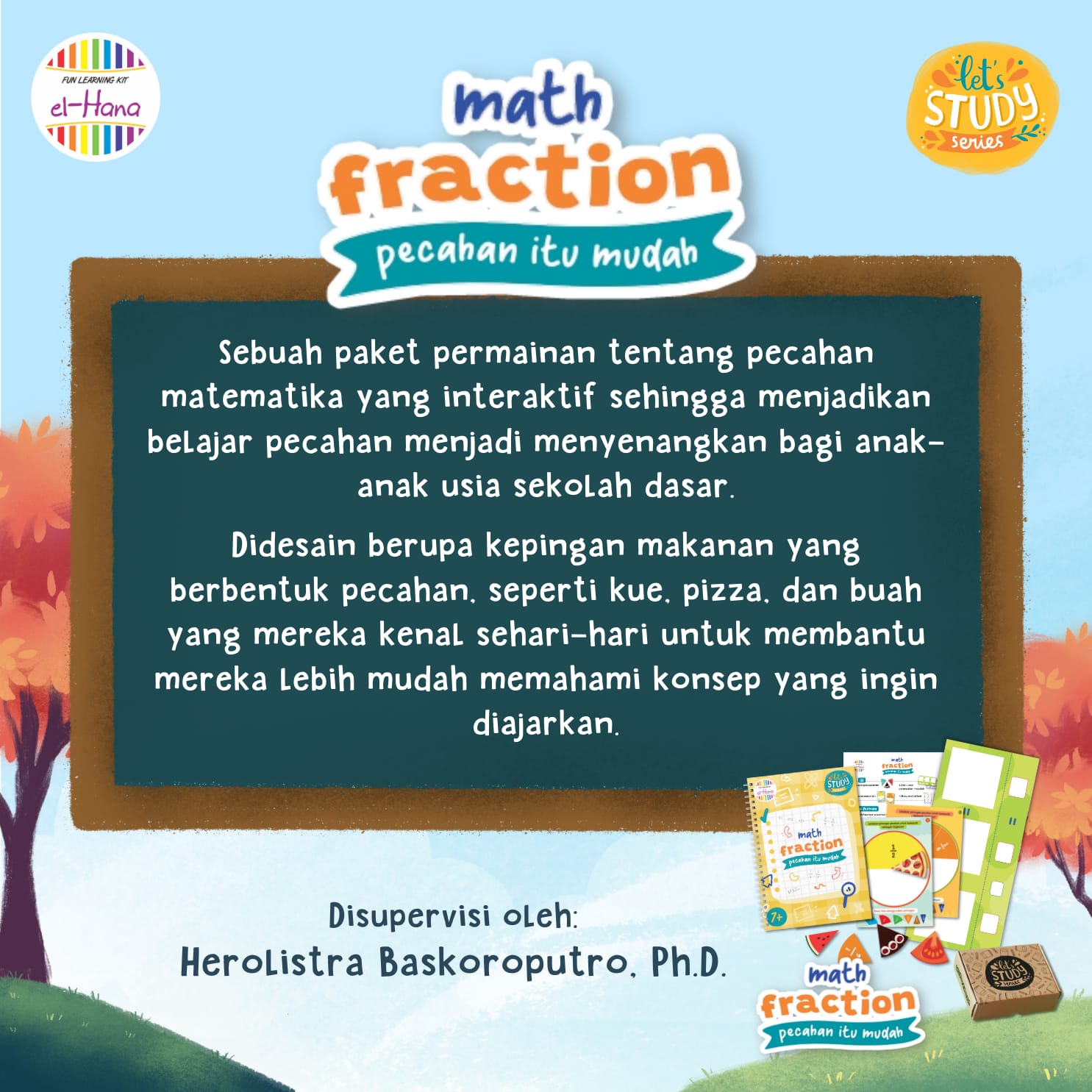 Buku Math Fraction: Matematika Mudah dari El Hana adalah sebuah paket belajar pecahan yang dirancang untuk membantu anak usia sekolah dasar memahami konsep pecahan dengan cara yang menyenangkan dan interaktif. Paket ini terdiri dari: