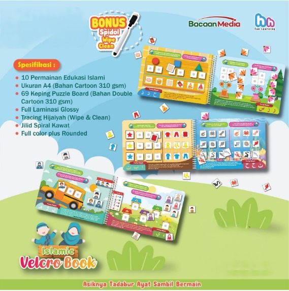 Islamic Velcro Book Bacaan Media adalah media edukasi yang menyenangkan untuk anak-anak usia balita. Buku ini terbuat dari bahan yang berkualitas tinggi dan dilengkapi dengan ilustrasi yang menarik. Islamic Velcro Book Bacaan Media dapat membantu anak-anak belajar tentang Islam dengan cara yang menyenangkan dan mudah dipahami.