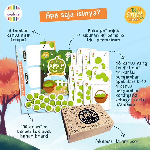 The Apple Maths El Hana bukan buku, melainkan permainan edukasi matematika untuk anak usia 5-8 tahun. Permainan ini didesain untuk membantu anak belajar matematika dasar dengan cara yang menyenangkan dan interaktif.