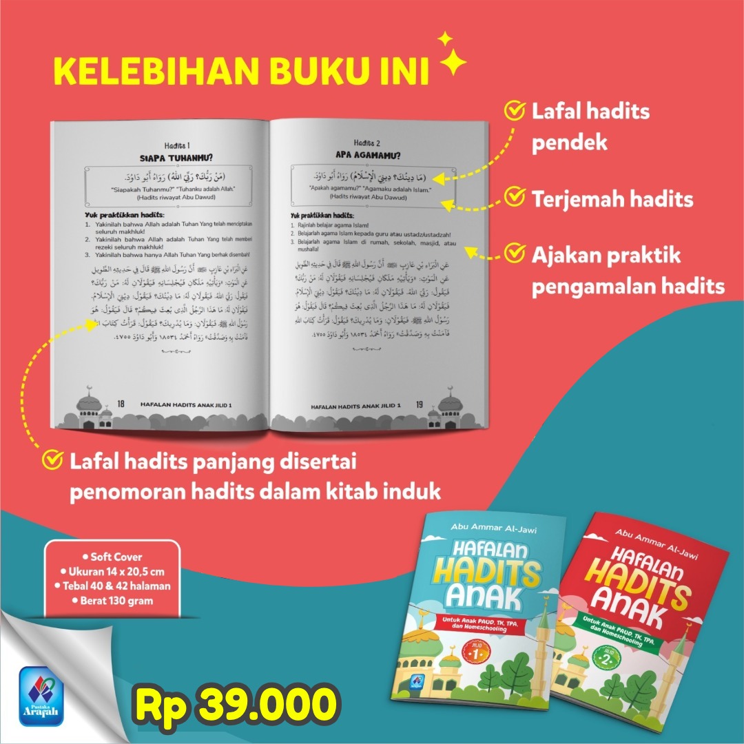 Buku Hafalan Hadits Anak Pustaka Arafah merupakan buku yang bermanfaat untuk membantu anak dalam memahami dan menghafalkan hadits-hadits Nabi Muhammad SAW. Buku ini dilengkapi dengan berbagai fitur yang menarik dan mudah dipahami oleh anak, sehingga sangat cocok untuk dijadikan sebagai media pembelajaran hadits bagi anak.