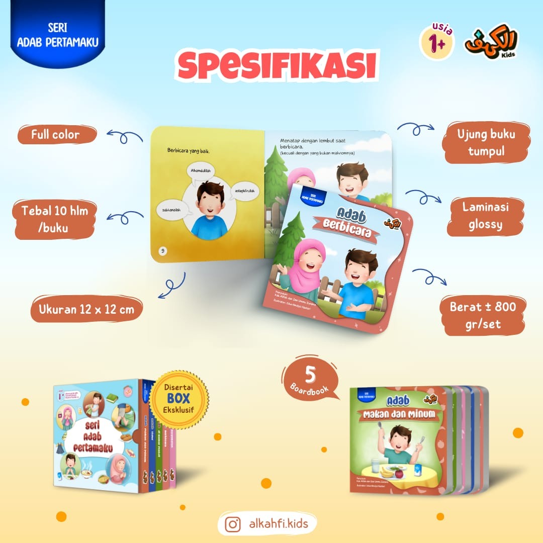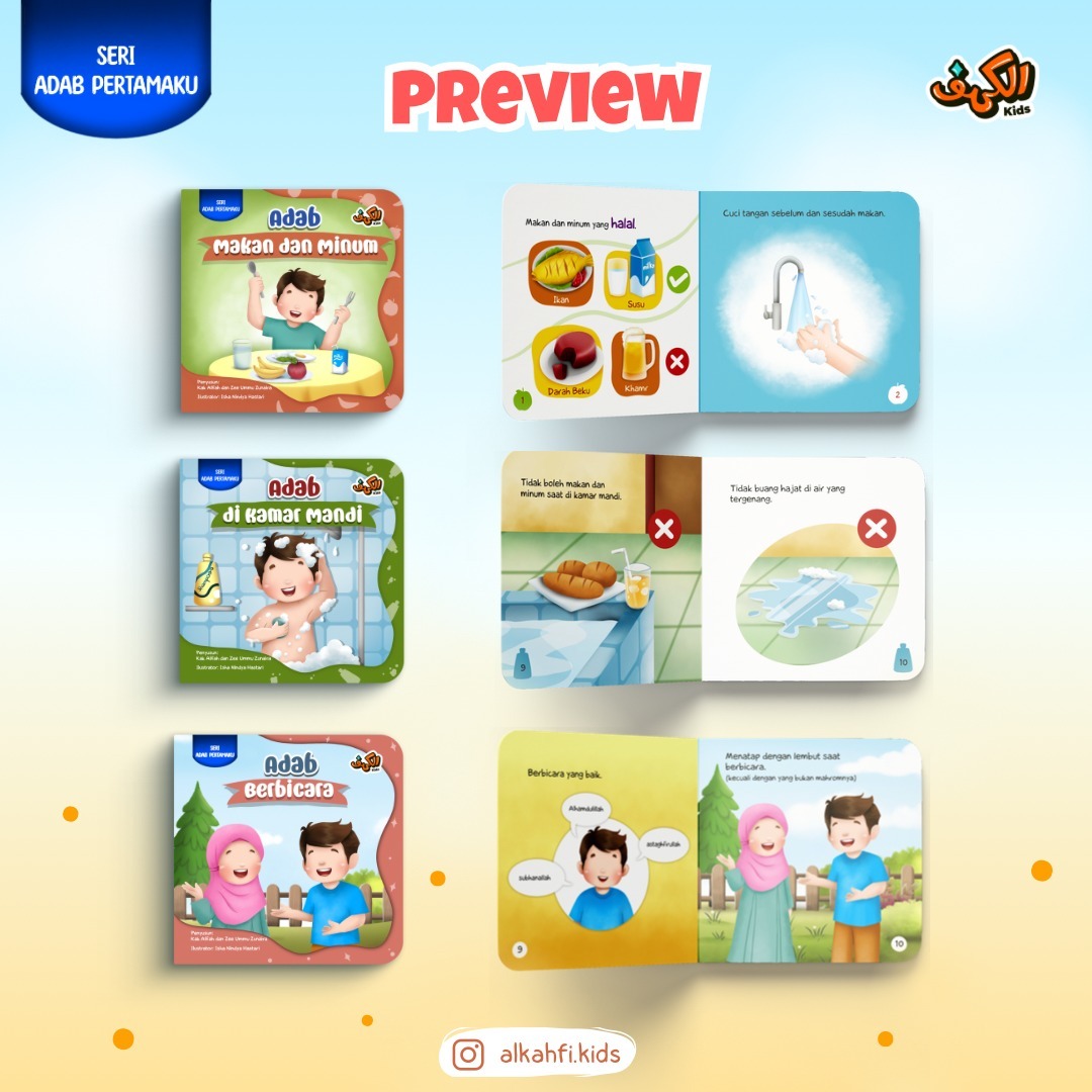 Salah satu buku best seller Alkahfi Kids, "Seri Adab Pertamaku" disajikan dengan bahasa yang sederhana dan ilustrasi full color yang menggemaskan. Sangat cocok untuk anak dan memudahkannya mengamalkan adab-adab tersebut sehari-hari.