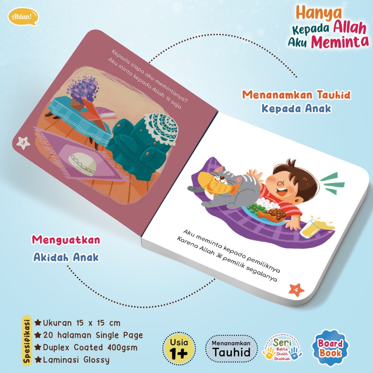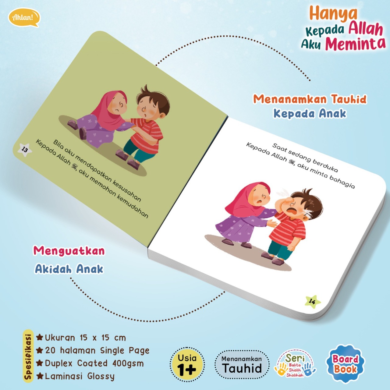 Telah hadir Boardbook untuk anak yang berjudul Hanya Kepada Allah Aku Meminta. Buku ini adalah buku untuk anak yang sangat spesial. Menumbuhkan dan menanamkan tauhid dalam diri anak agar selalu berharap dan berdoa hanya kepada Allah saja.