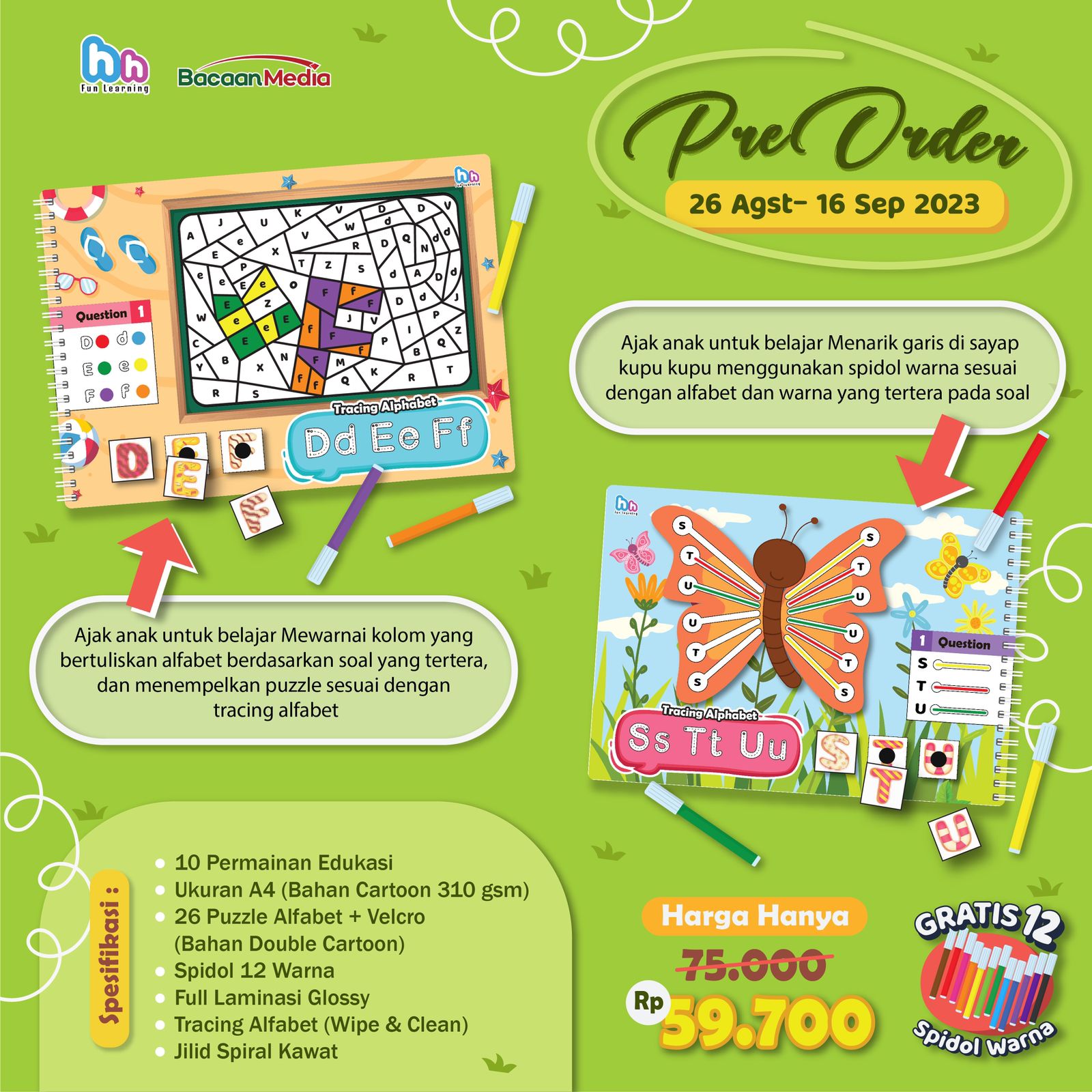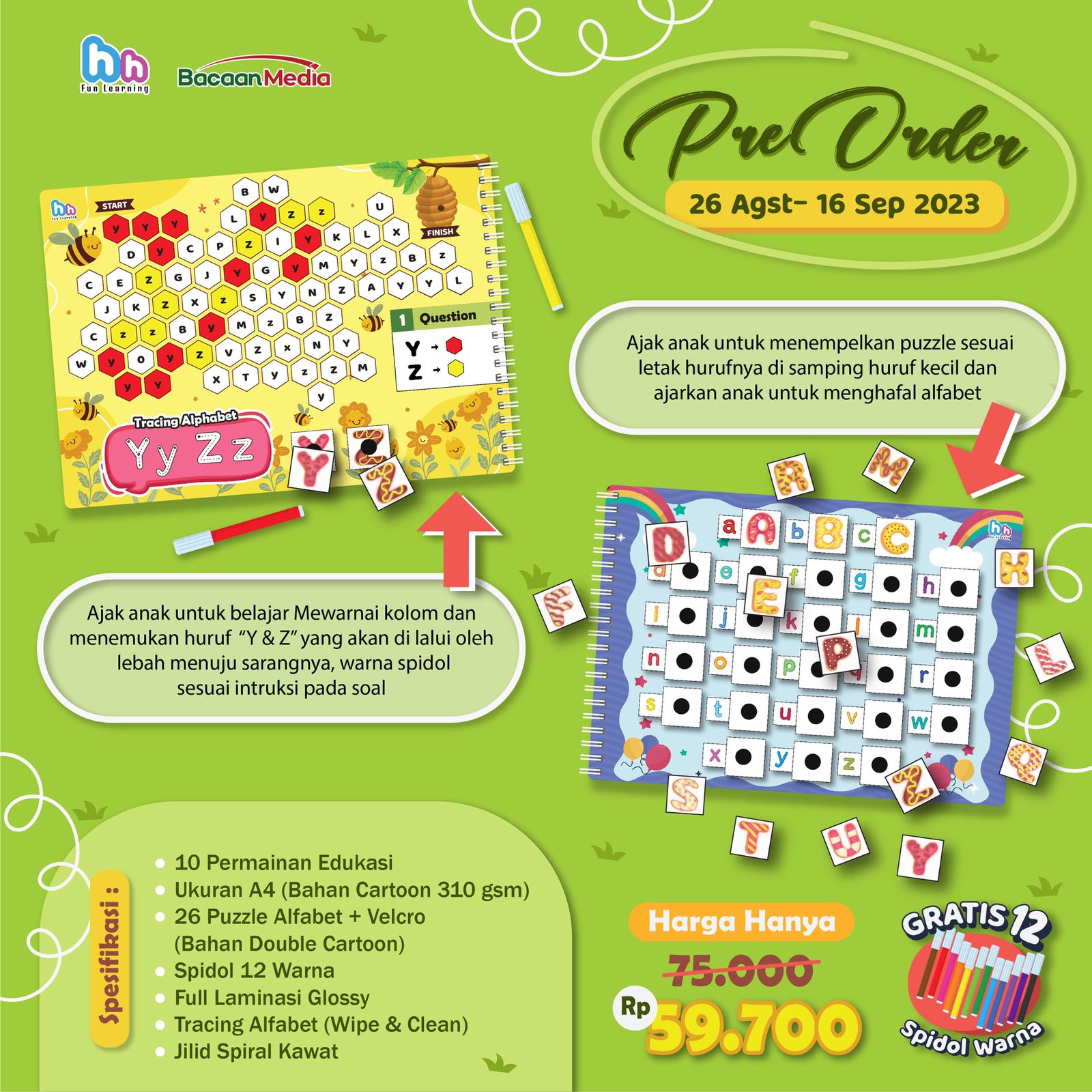 Jadikan hari-hari mengenal huruf si kecil menjadi penuh warna dengan My Colorful Alphabet. Buku edukasi mengenal alfabet dengan cara seru. Ananda tidak akan sadar bahwa kegiatan bermainnya merupakan suatu pembelajaran.