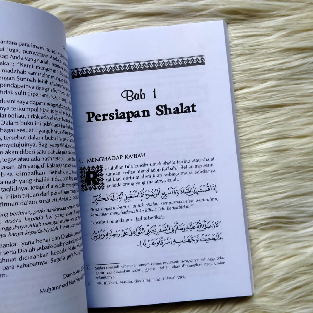 "Buku Sifat Shalat Nabi yang ringkas tetapi banyak manfaatnya ini adalah terjemahan buku Shifatu Shalaati An-Nabiyyi Shallallaahu Alaihi wa Sallam min At-Takbiiri ilaa At-Tasliimi Ka-annaka Taraahaa karya Muhammad Nashiruddin Al-Albani yang telah direvisi, setelah cetakan ke-10 yang beredar hingga sepuluh tahun. Dengan terbitnya buku Sifat Shalat Nabi, diharapkan wawasan kita tentang tata cara shalat sesuai dengan tuntunan Rasulullah Shallallaahu Alaihi wa Sallam semakin luas sehingga kita dapat menilai tata cara shalat yang mengikuti tuntunan Rasulullah Shallallaahu Alaihi wa Sallam dan tata cara shalat yang menyimpang. Kita ikuti tata cara shalat sesuai tuntunan Rasulullah dan kita tinggalkan tata cara shalat yang menyimpang dari tuntunannya