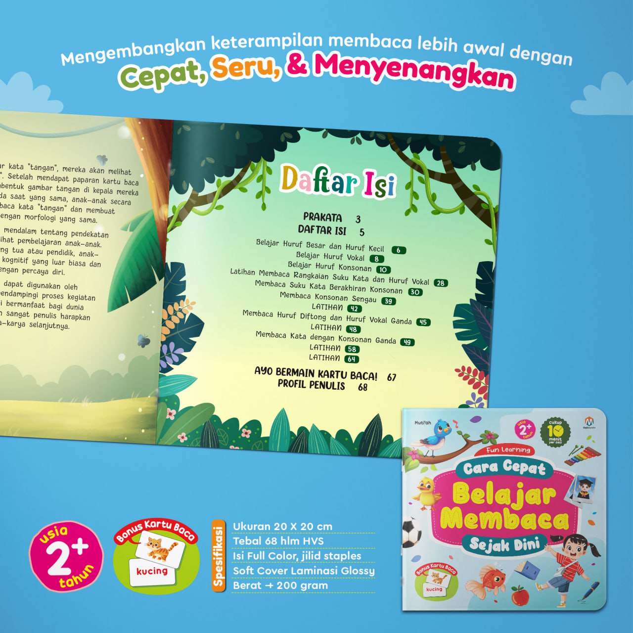 Untuk membantu si kecil belajar membaca yang sesuai minat dan tumbuh kembangnya, maka kini kami hadirkan kembali buku best seller dalam kemasan yang lebih fresh yakni “FUN LEARNING CARA CEPAT BELAJAR MEMBACA SEJAK DINI”