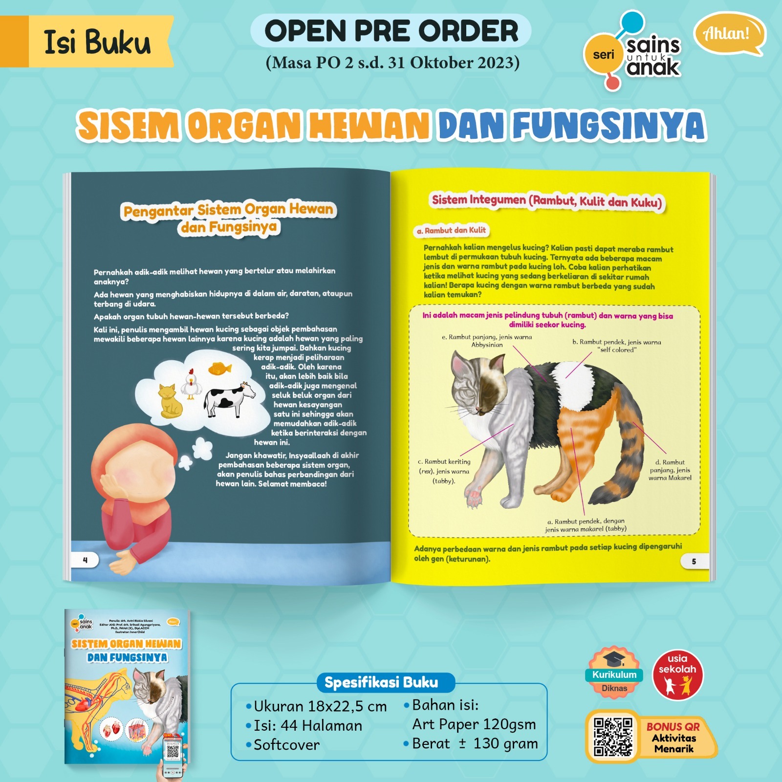 Dengan memfokuskan pembahasan pada tubuh kucing, Adik-Adik akan mengetahui seluruh sistem organ yang ada padanya. Ditambah dengan perbandingan dari hewan lain pada sebagian sistem organ yang dijelaskan akan menambah pengetahuan. Dilengkapi dengan fakta unik dan menarik yang diselipkan pada setiap pembahasan sehingga menambah wawasan. Ada ikan yang tak bersisik, ular yang berganti kulit, sapi yang memiliki 4 lambung, kanibal intrauterin pada hiu, dan masih banyak lagi yang lainnya.