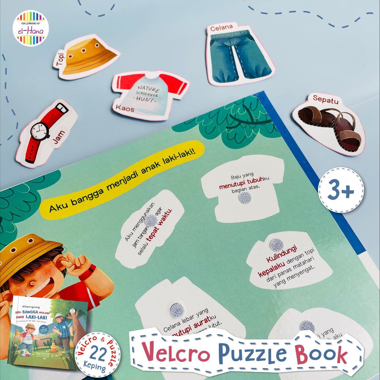 Buku ini dikemas dalam bentuk Velcro Puzzle Book, yaitu buku edukatif dengan aktivitas tempel-lepas yang menarik dan interaktif.