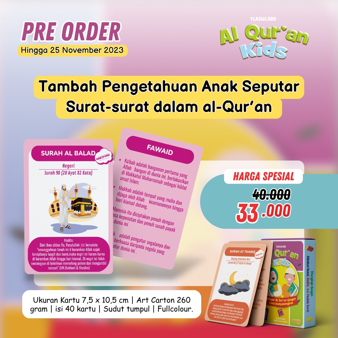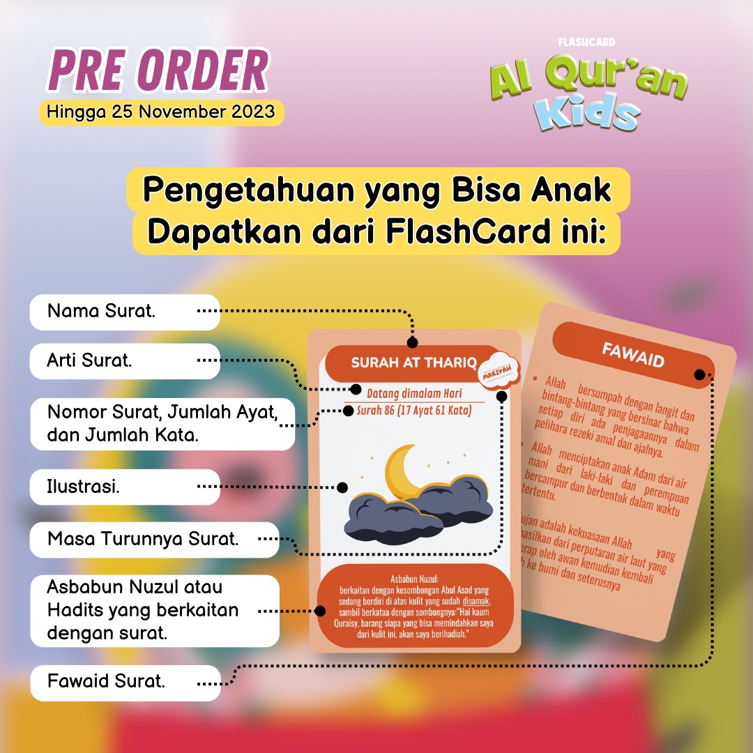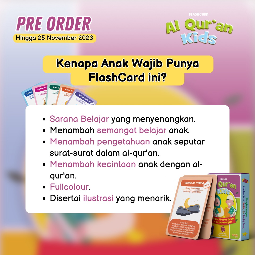 Flashcard Al-Quran Kids merupakan alat bantu belajar yang baik untuk anak-anak usia dini yang sedang dalam tahap mengenal Al-Quran. Flashcard ini dapat membantu anak-anak belajar dengan cara yang menyenangkan dan mudah dipahami.