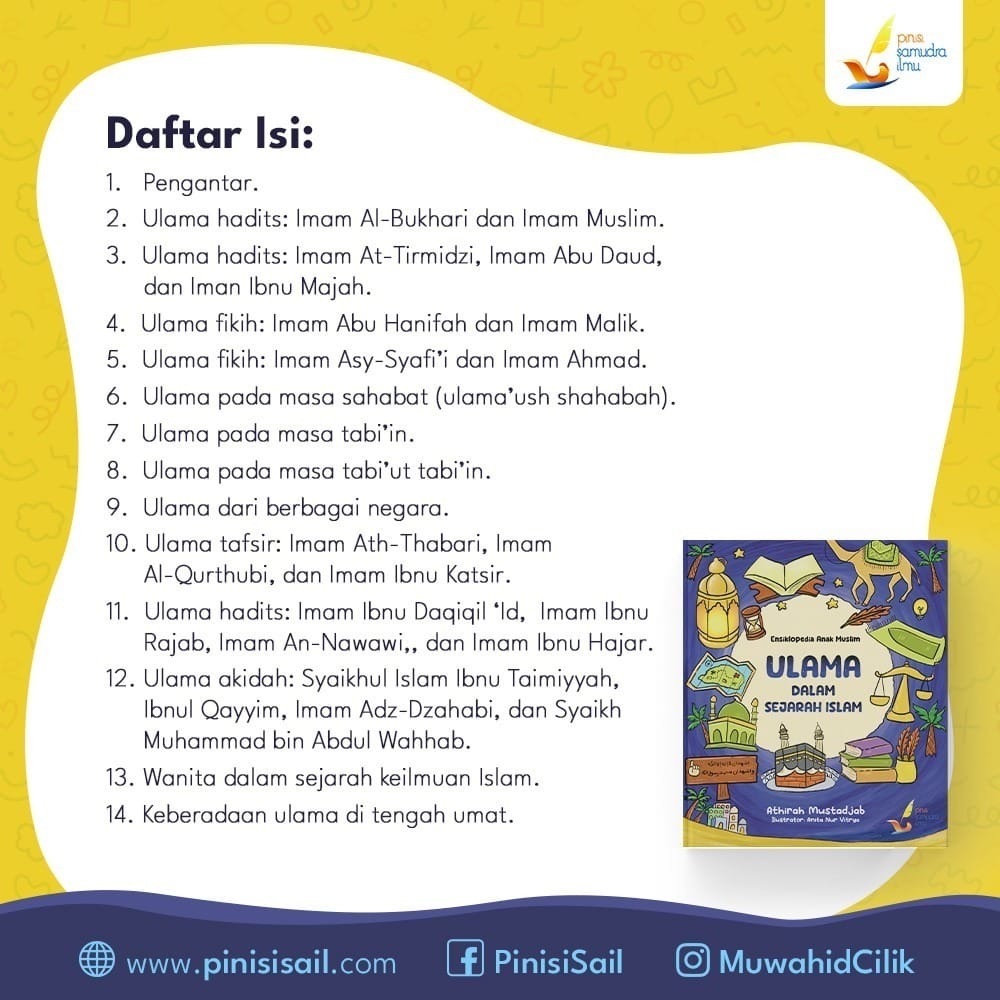 Ensiklopedia Anak Muslim Ulama Dalam Sejarah Islam (Pinisi Samudera Ilmu) adalah buku yang bermanfaat bagi anak-anak untuk mengenal para ulama teladan dan menumbuhkan rasa cinta mereka terhadap ilmu pengetahuan Islam. Buku ini dikemas dengan menarik dan mudah dipahami oleh anak-anak, sehingga menjadikannya pilihan yang tepat untuk mengenalkan sejarah Islam kepada generasi muda.