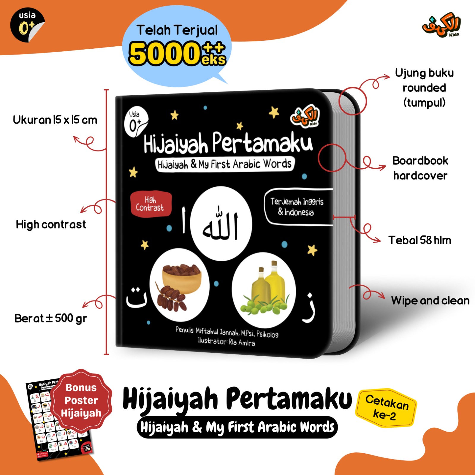 Boardbook ini tidak hanya mengajak Si Kecil mengenal huruf hijaiyah, namun Si Kecil juga bisa mendapatkan beragam manfaat lainnya sejak bayi hingga di usia sekolah, hanya melalui satu boardbook ini. Cocok banget untuk investasi jangka panjang????
