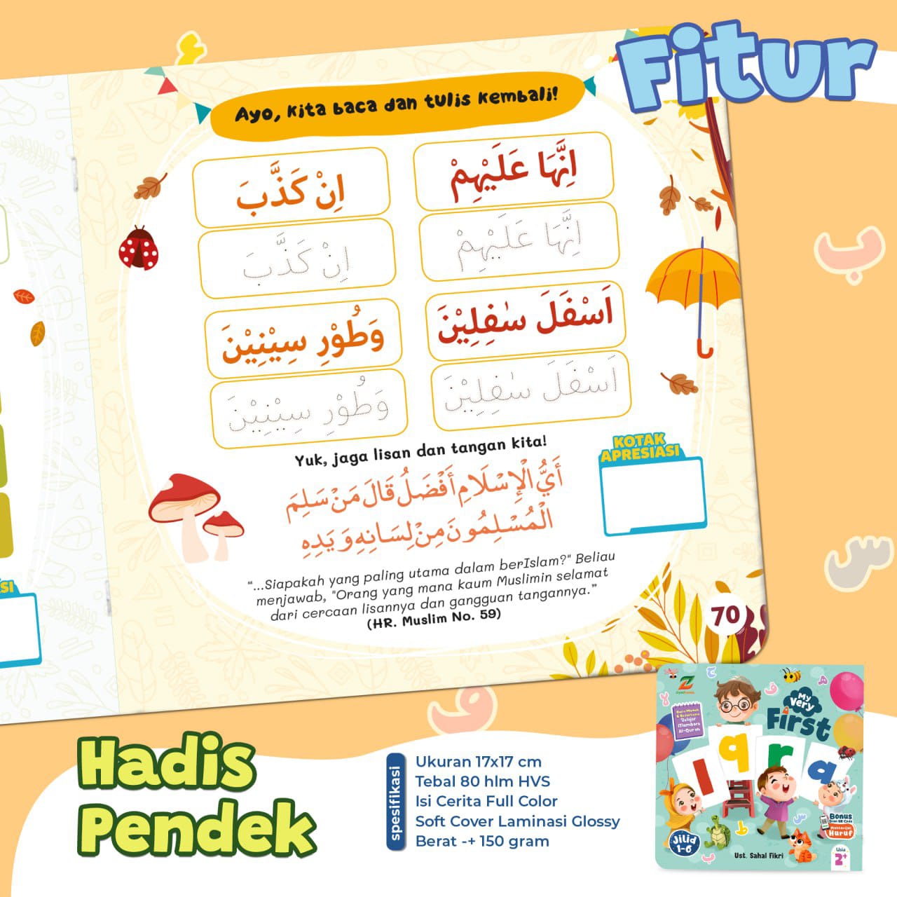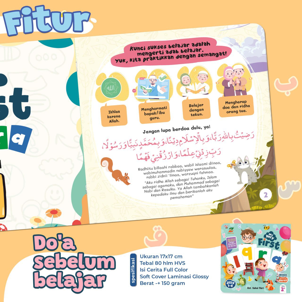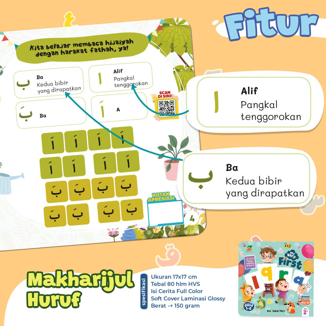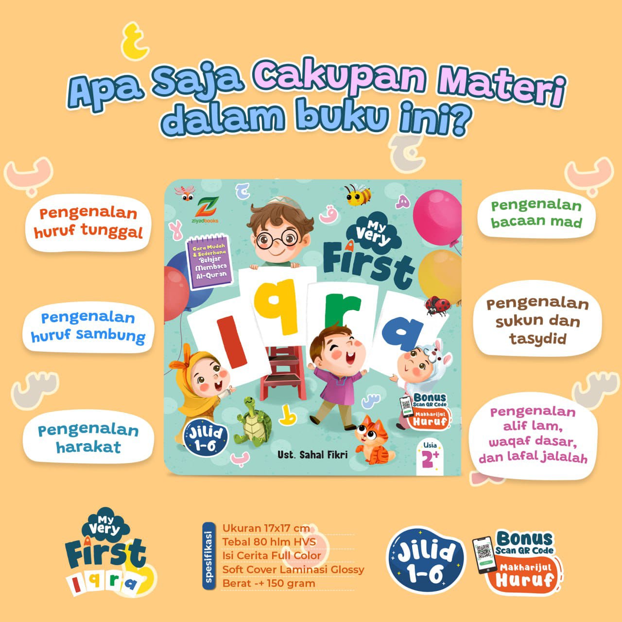 My Very First Iqra adalah buku yang tepat untuk membantu balita belajar mengaji dengan mudah dan menyenangkan. Buku ini dikemas dengan menarik dan penuh warna, sehingga dapat menarik perhatian anak dan membuat mereka antusias untuk belajar. Materinya pun disusun secara bertahap dan sesuai dengan kemampuan anak, sehingga mereka dapat belajar dengan mudah dan efektif. Selain itu, buku ini juga dilengkapi dengan bonus audio tentang Makharijul Huruf dan panduan adab belajar dan doa sebelum memulai belajar Iqra, yang dapat membantu anak belajar membaca Al-Quran dengan benar dan berakhlak mulia.