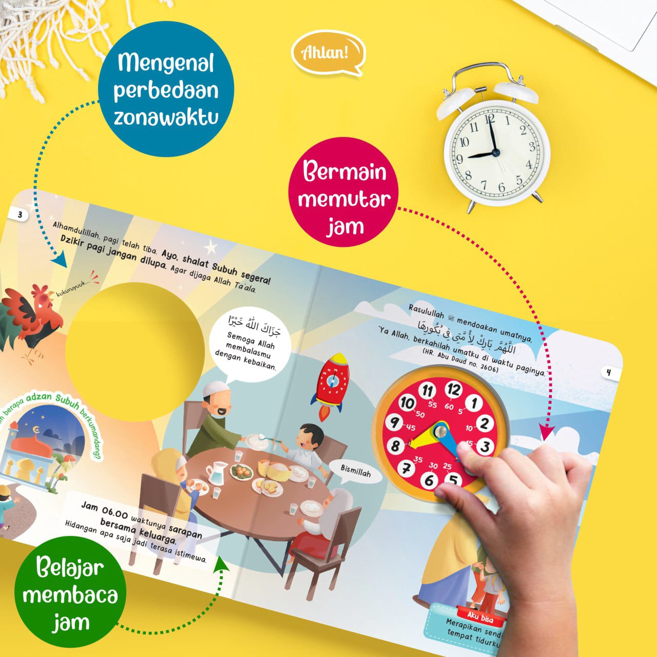 * Fitur Interaktif: Buku ini dilengkapi dengan jarum jam digital yang bisa diputar sendiri oleh si kecil. Dengan fitur ini, anak-anak tidak terasa belajar membaca jam analog sambil bersenang-senang.