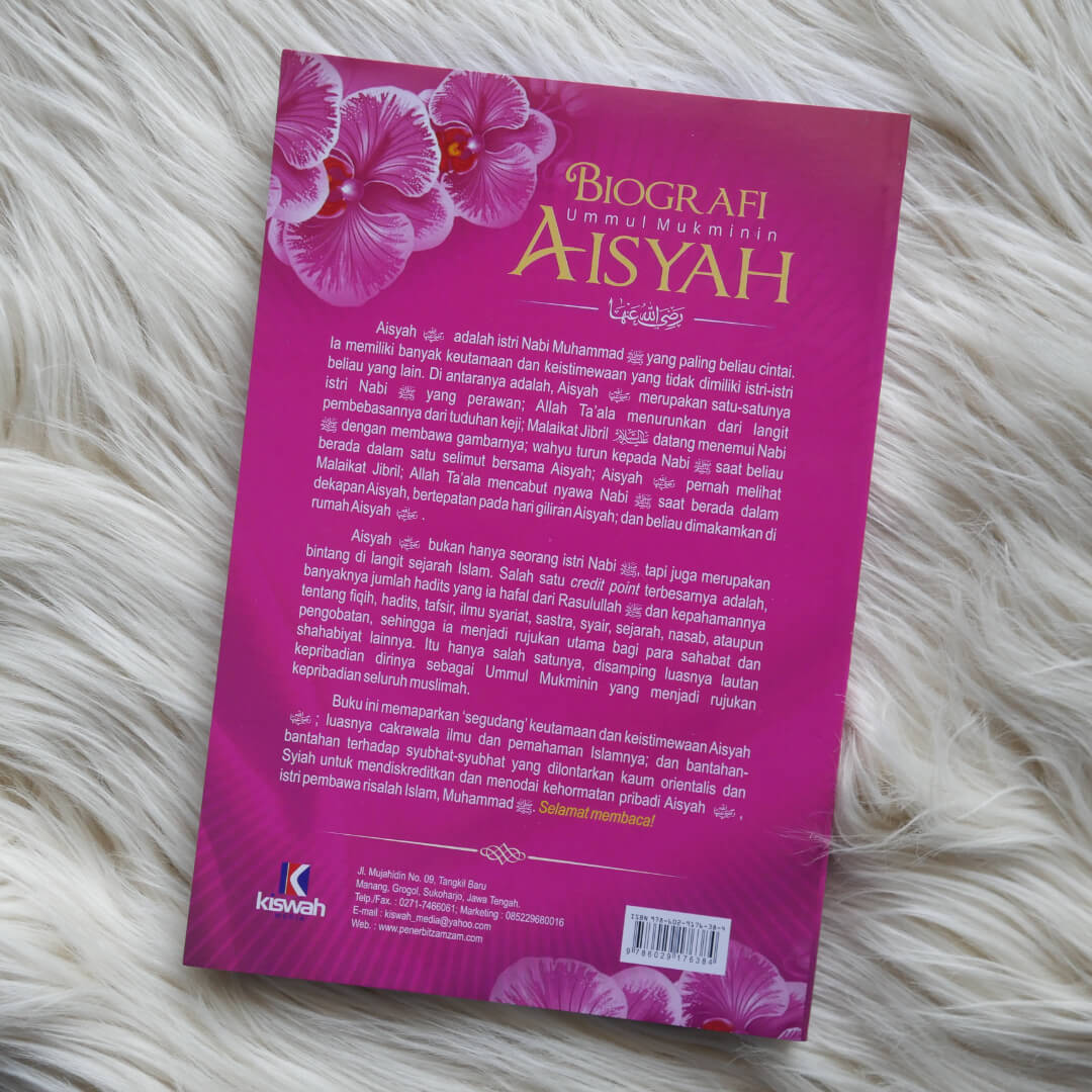 "Buku Biografi Ummul Mukminin ‘Aisyah ini menceritakan kisah riwayat hidup dari ‘Aisyah Radhialllahu ‘anha yang merupakan wanita yang paling dicintai Rasulullah Shallallahu ‘Alaihi wa Sallam. Putri dari seorang Shahabat yang paling dicintai Rasulullah Shallallahu ‘Alaihi wa Sallam. Kecerdasannya, kecerdikannya, zuhudnya dan semua aktivitasnya sangat tepat menjadi contoh bagi wanita yang mengharapkan ridhaNya.